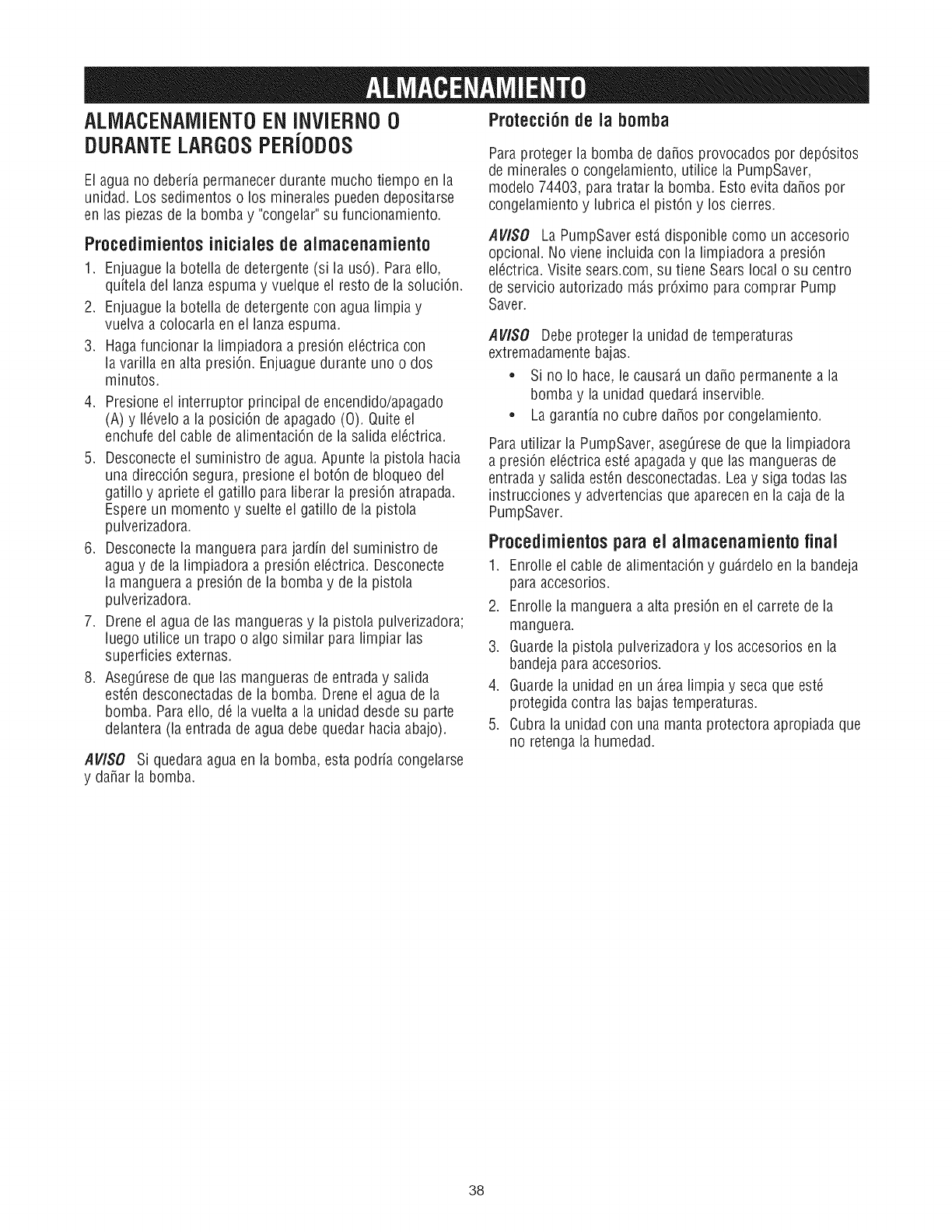 de mineraies o congelamiento, utilice ia PumpSaver,