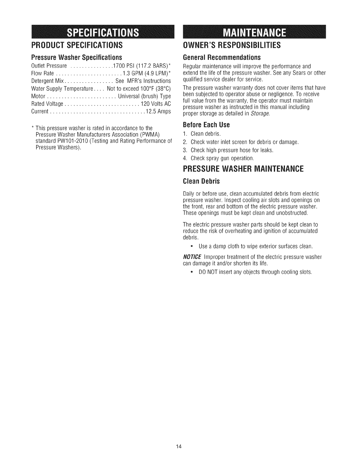 * This pressure washer is rated in accordance to the Pressure Washer Manufacturers Association