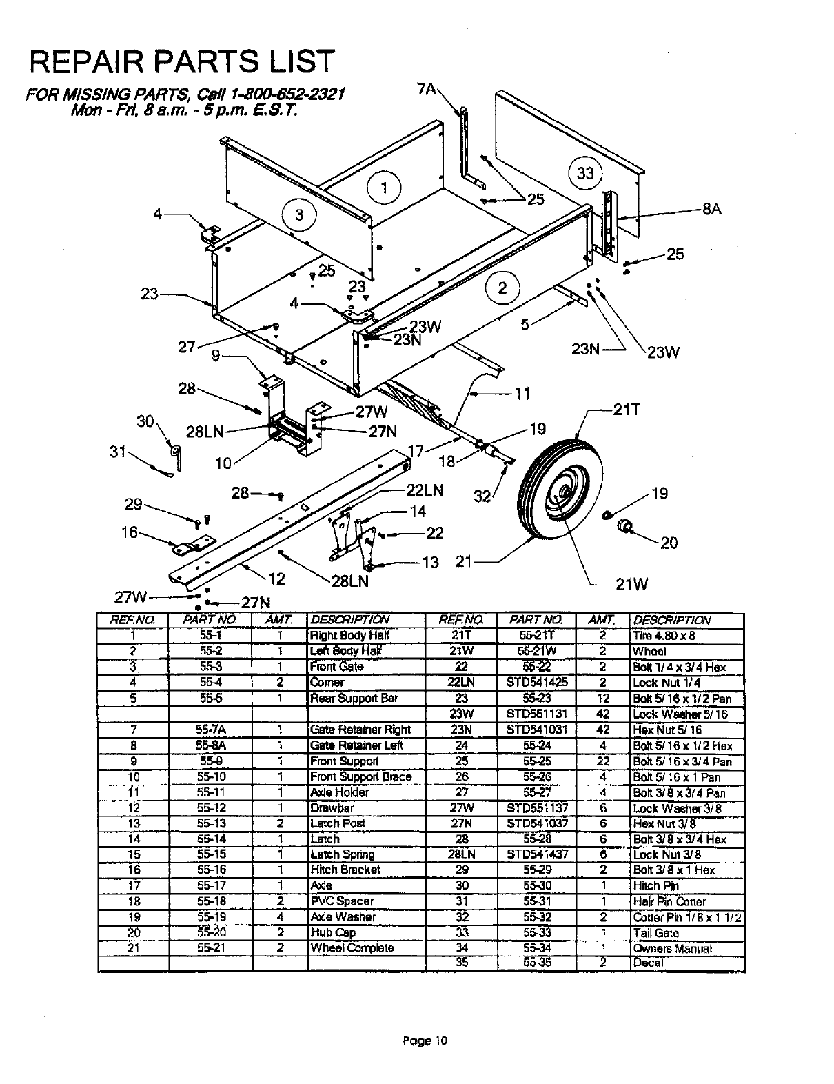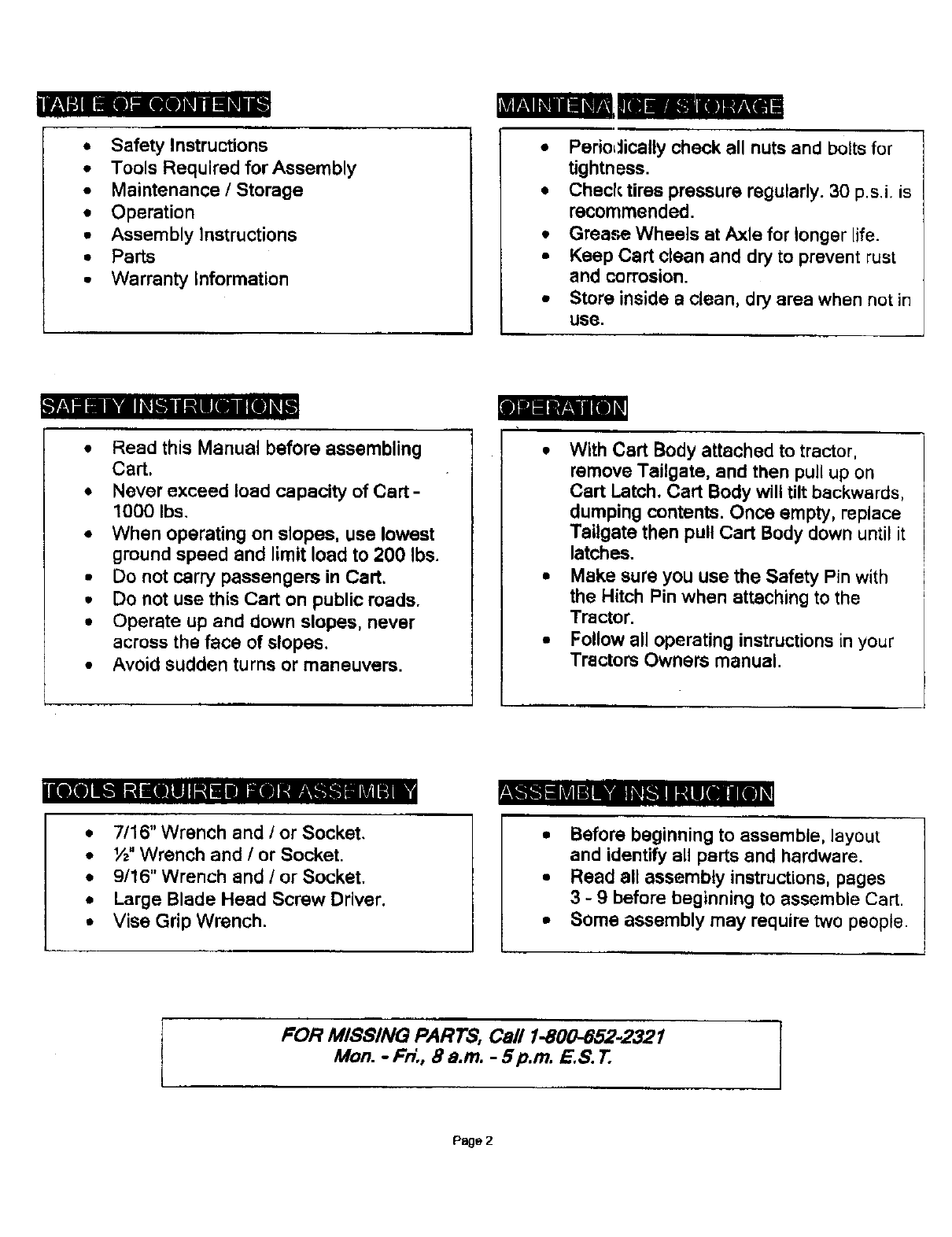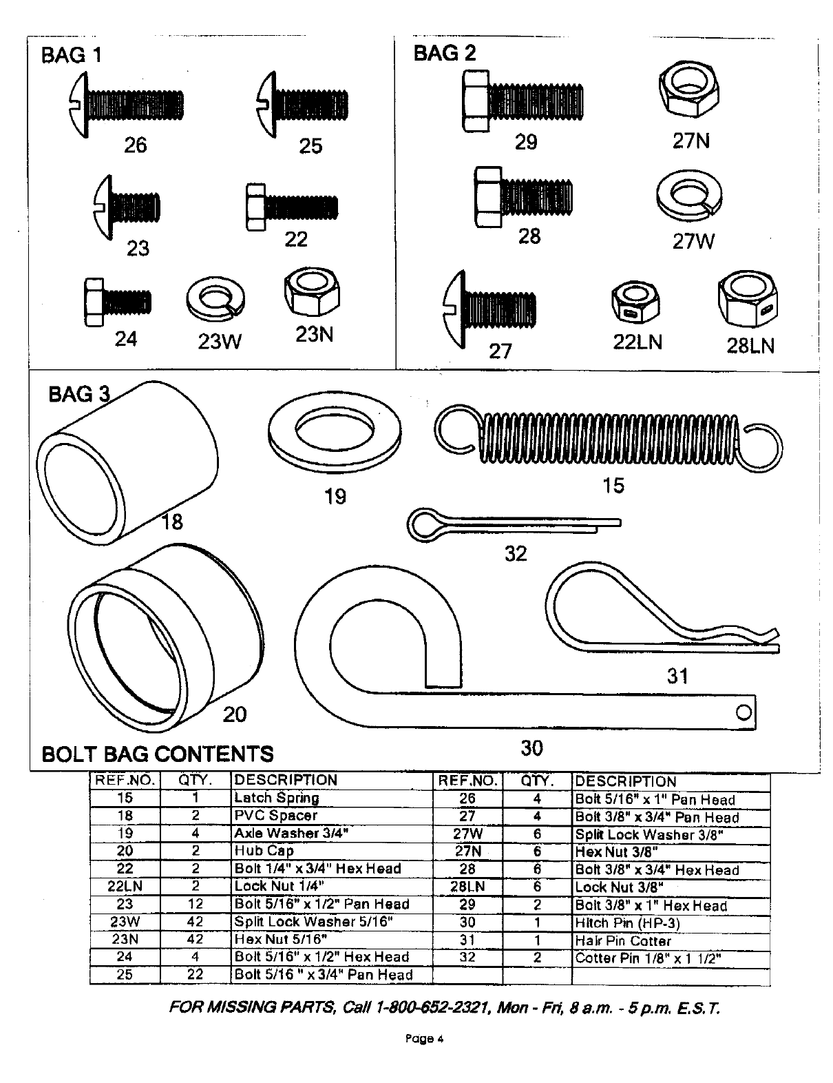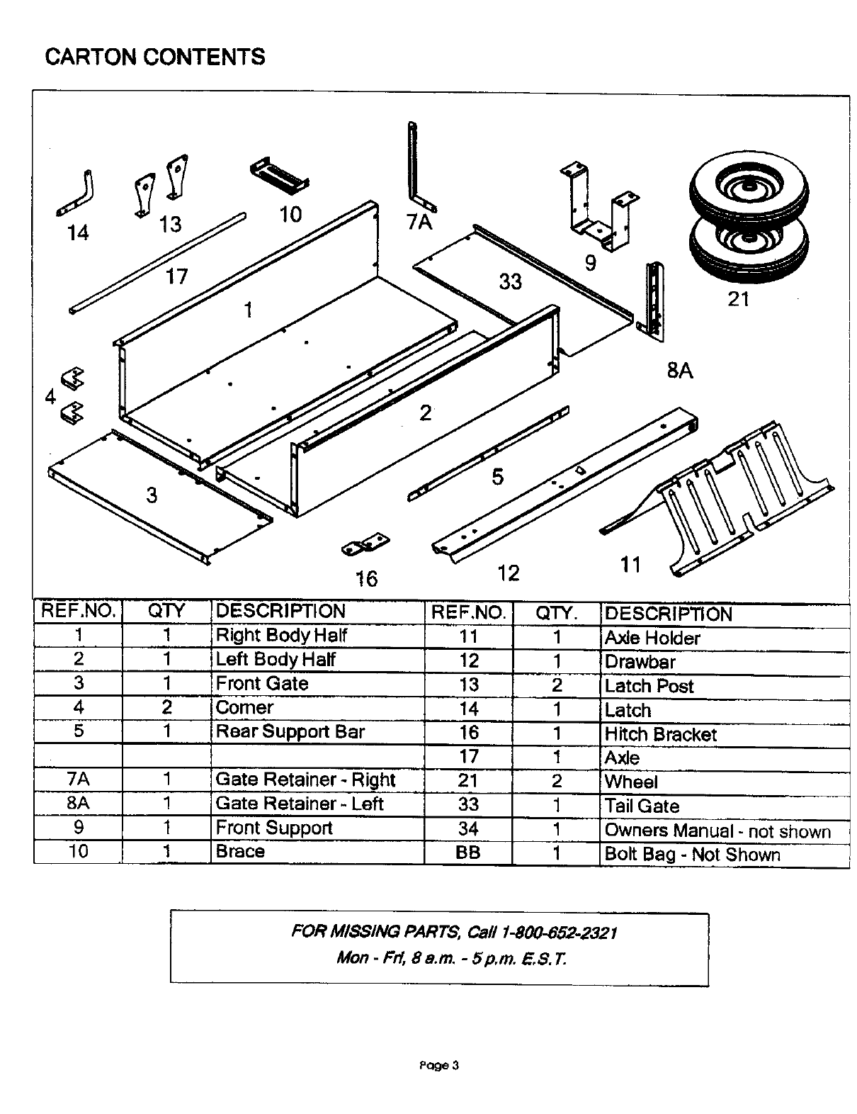 FOR MISSING PARTS, Call 1-800-852-2321