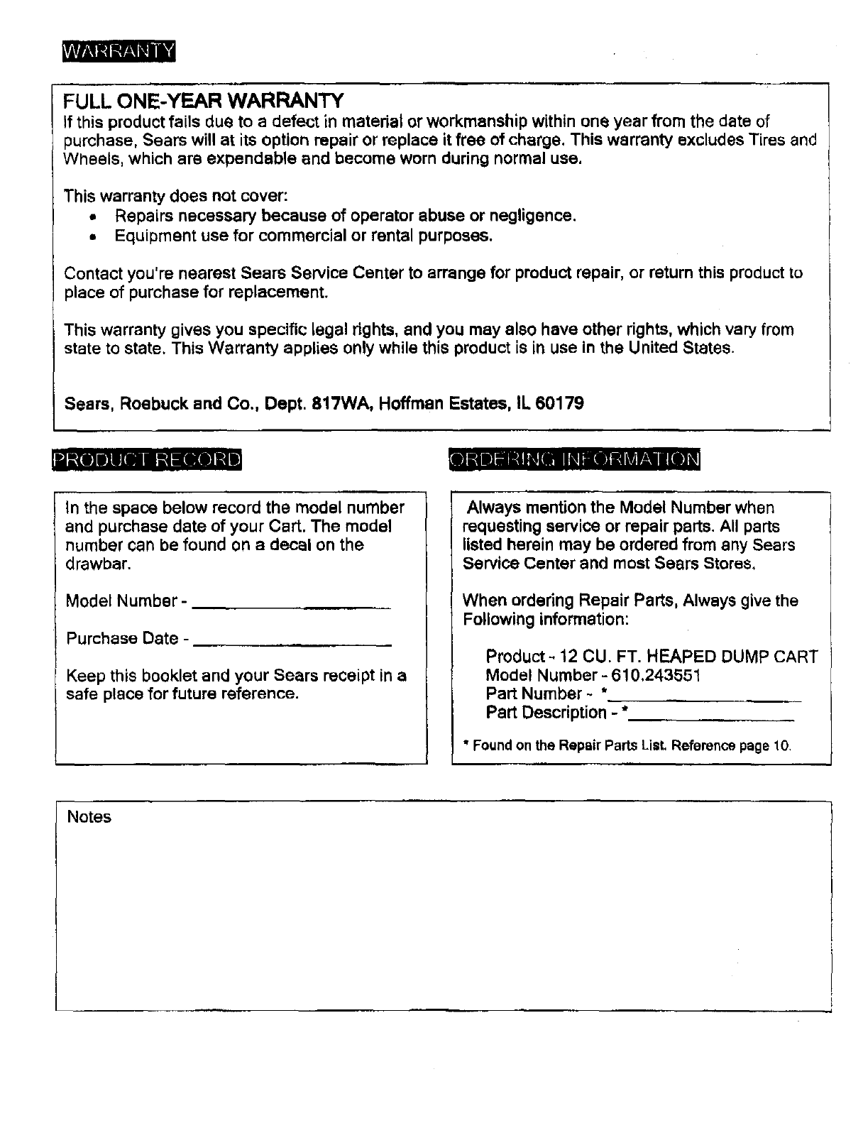 Sears, Roebuck and Co., Dept. 817WA, Hoffman Estates, IL 60179