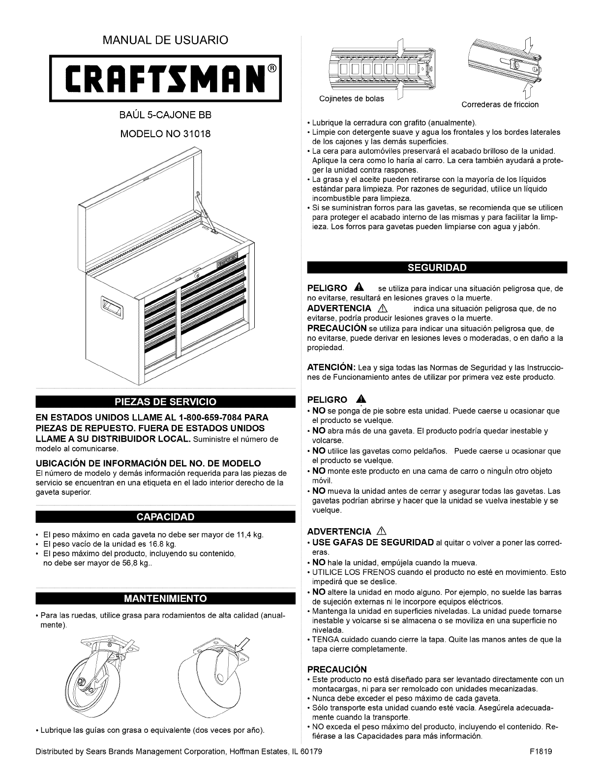 Craftsman 70631018 1206463L User Manual TOOL CHEST Manuals And Guides