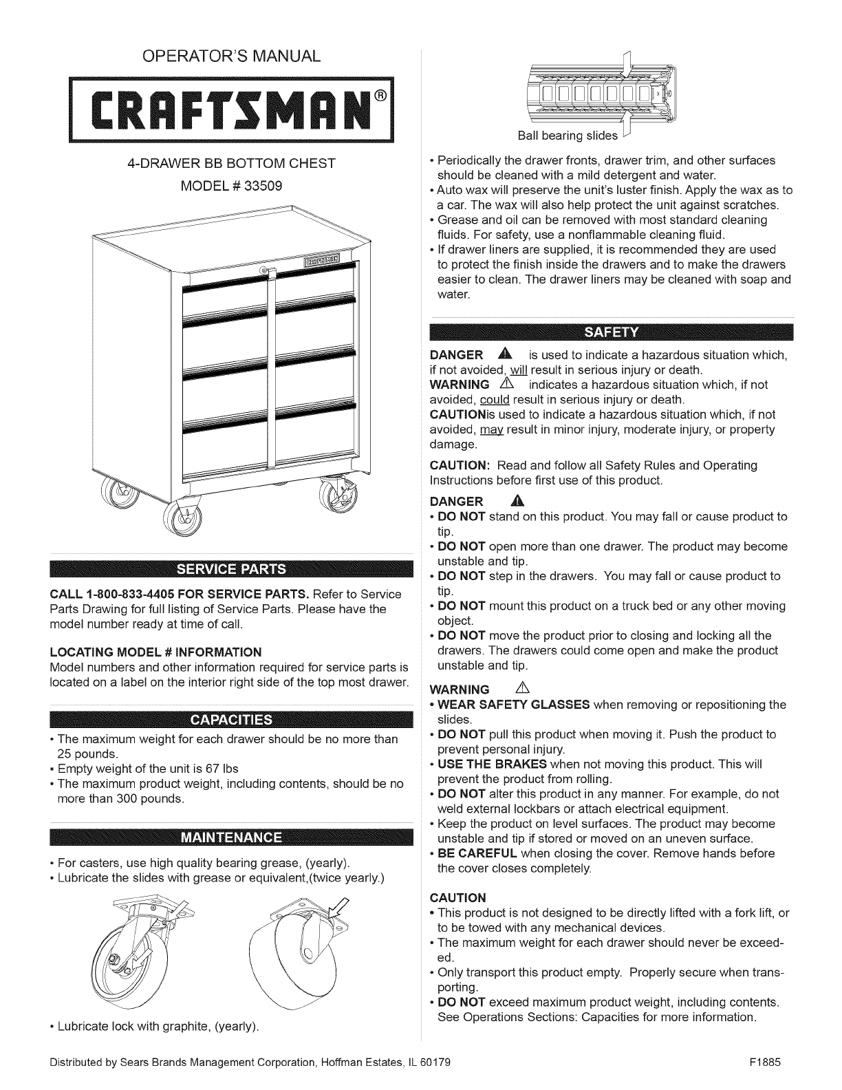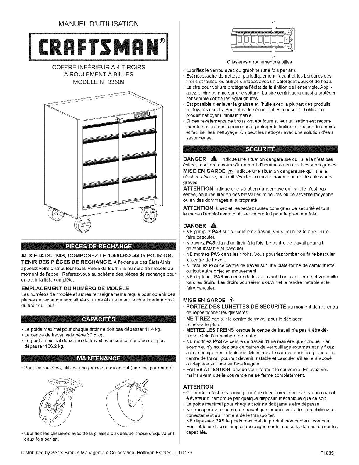 Distributed by Sears Brands Management Corporation, Hoffman Estates, IL 60179 F1885