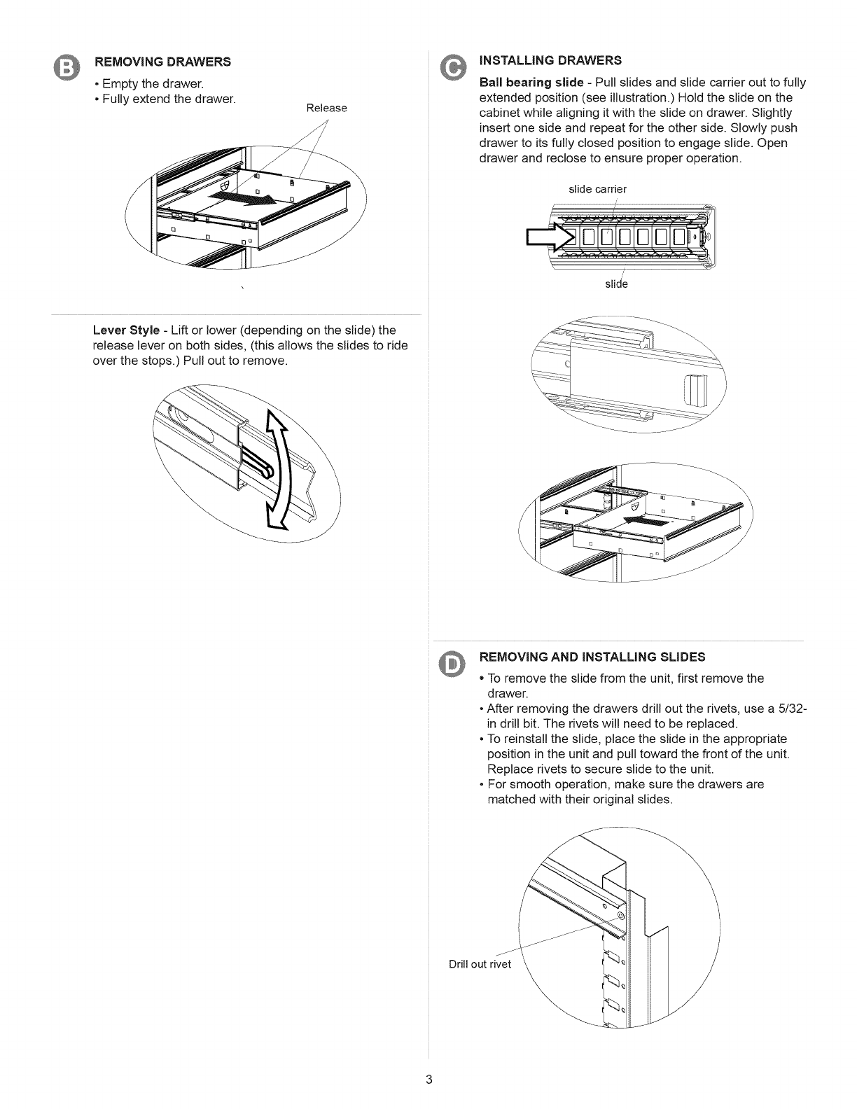 • Reinstall bottom drawers. (See Operation Section, Part