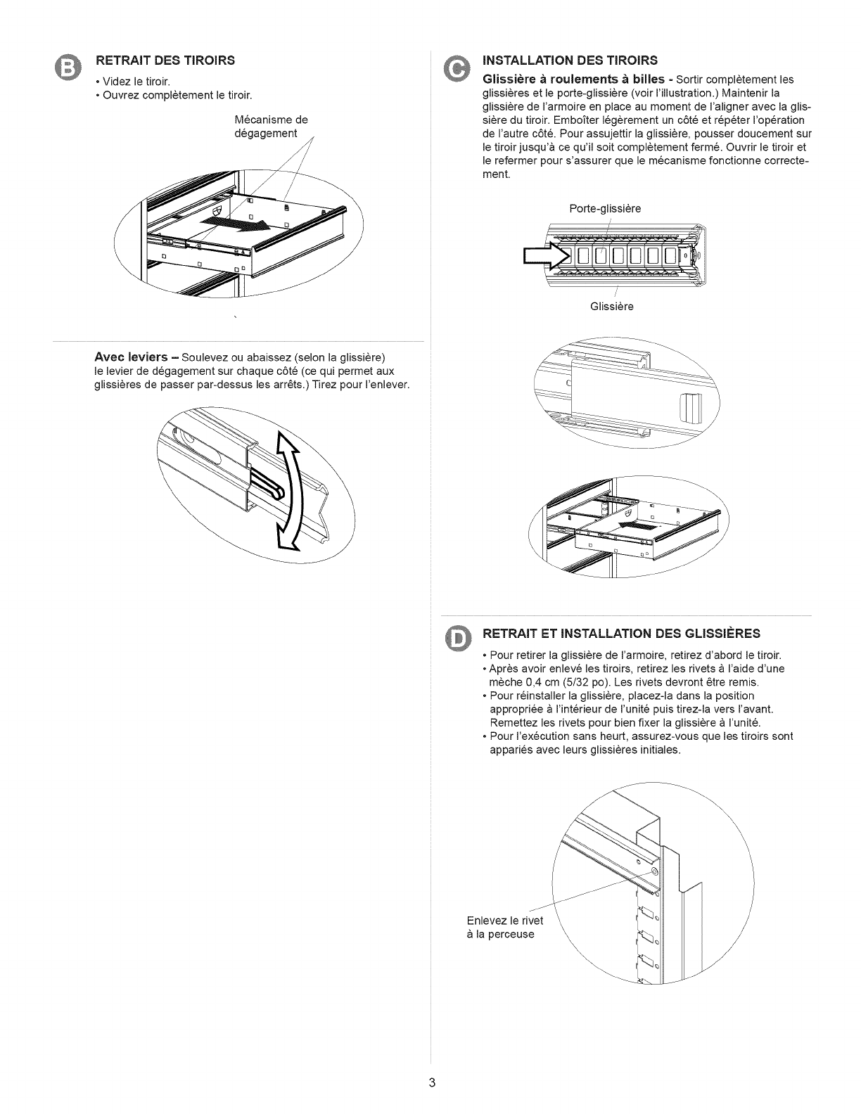 • Pour retirer la glissiere de I'armoire, retirez d'abord le tiroir.