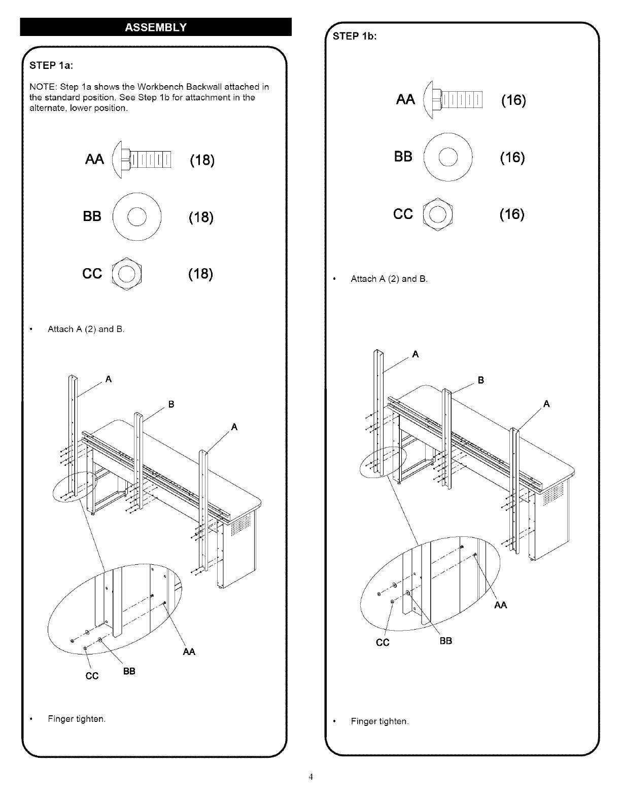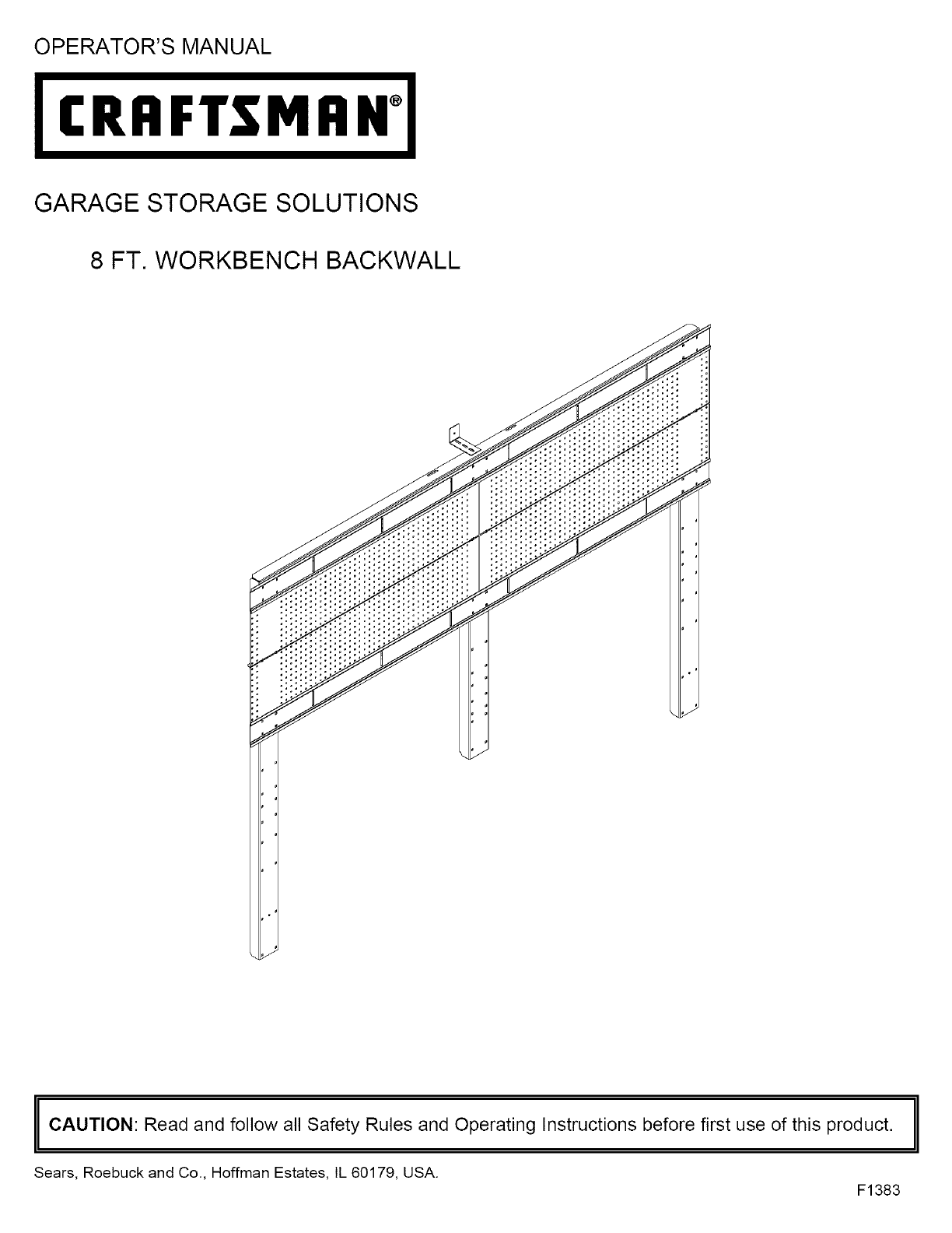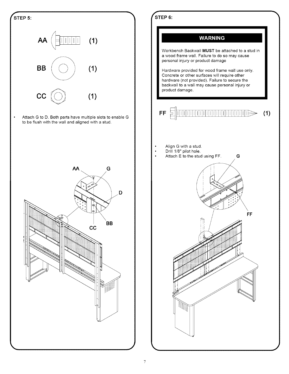 Be sure the workbench is flat on the floor before installing the Workbench Backwall. Failure to do so may cause personal injury or