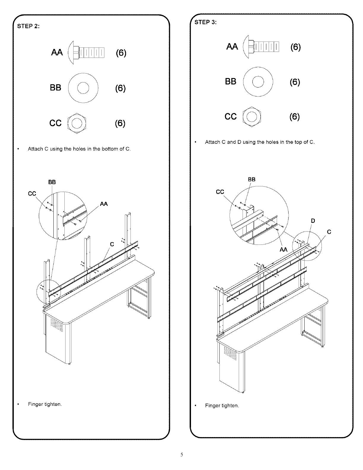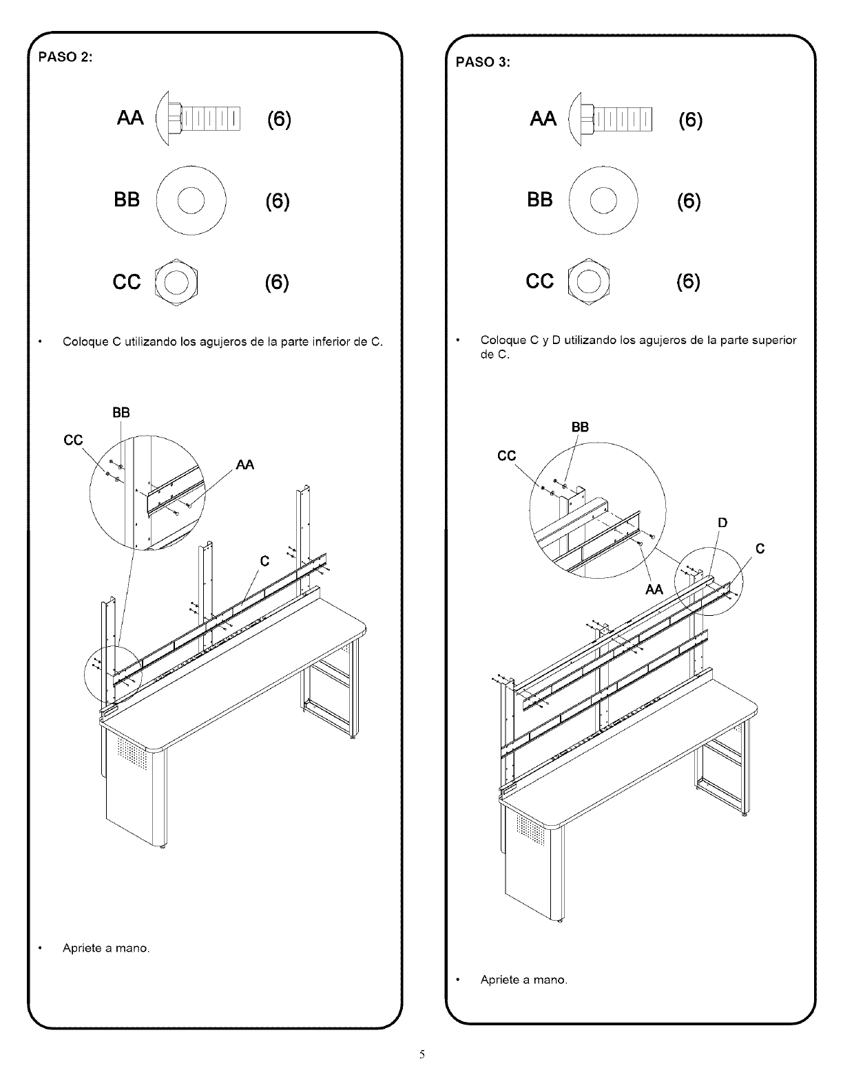 Coloque C utilizando los agujeros de la parte inferior de C.