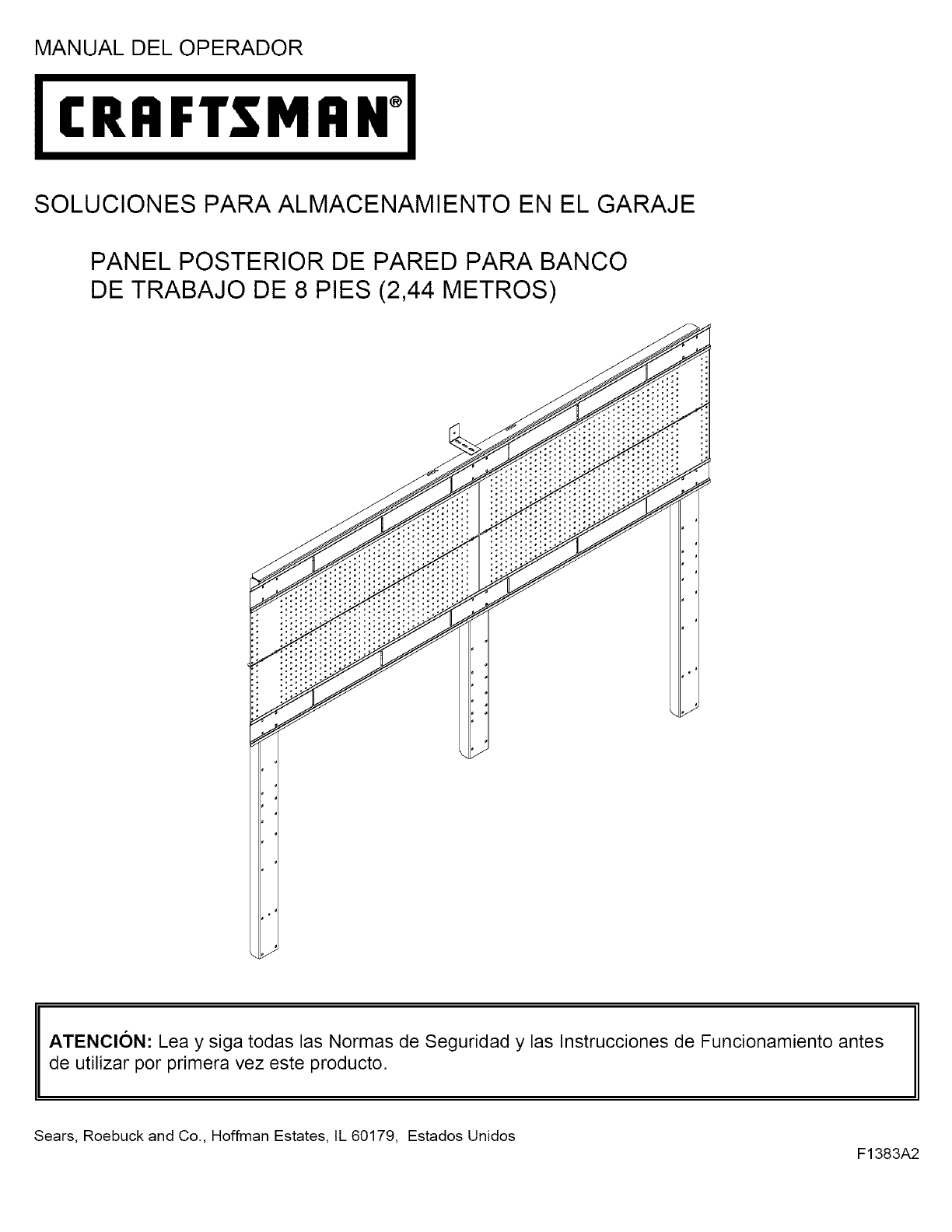 AsegQrese de que el banco de trabajo esta colocado piano en el suelo antes de instalar el Panel Posterior de Pared. De Io contrario