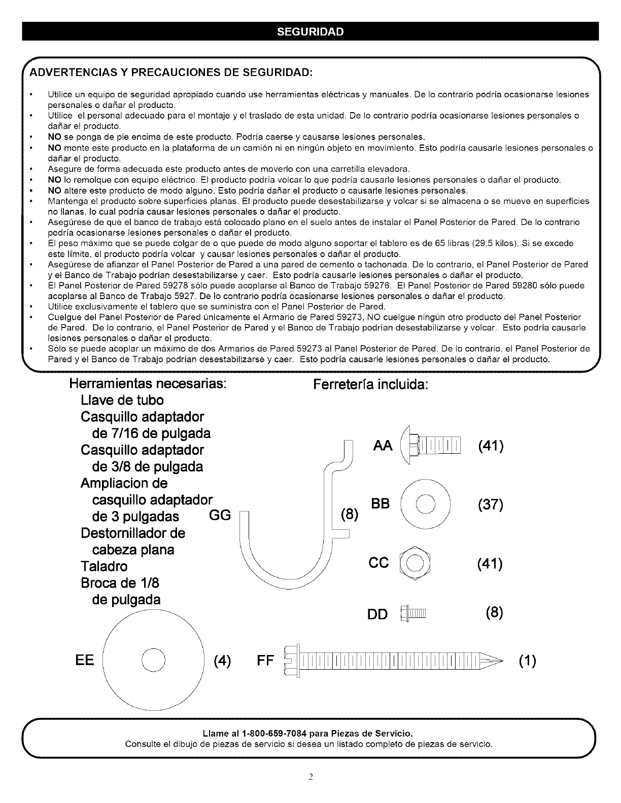 Pared y el Banco de Trabajo podrian desestabilizarse y caer. Esto podria causarle lesiones personales o daSar el producto.