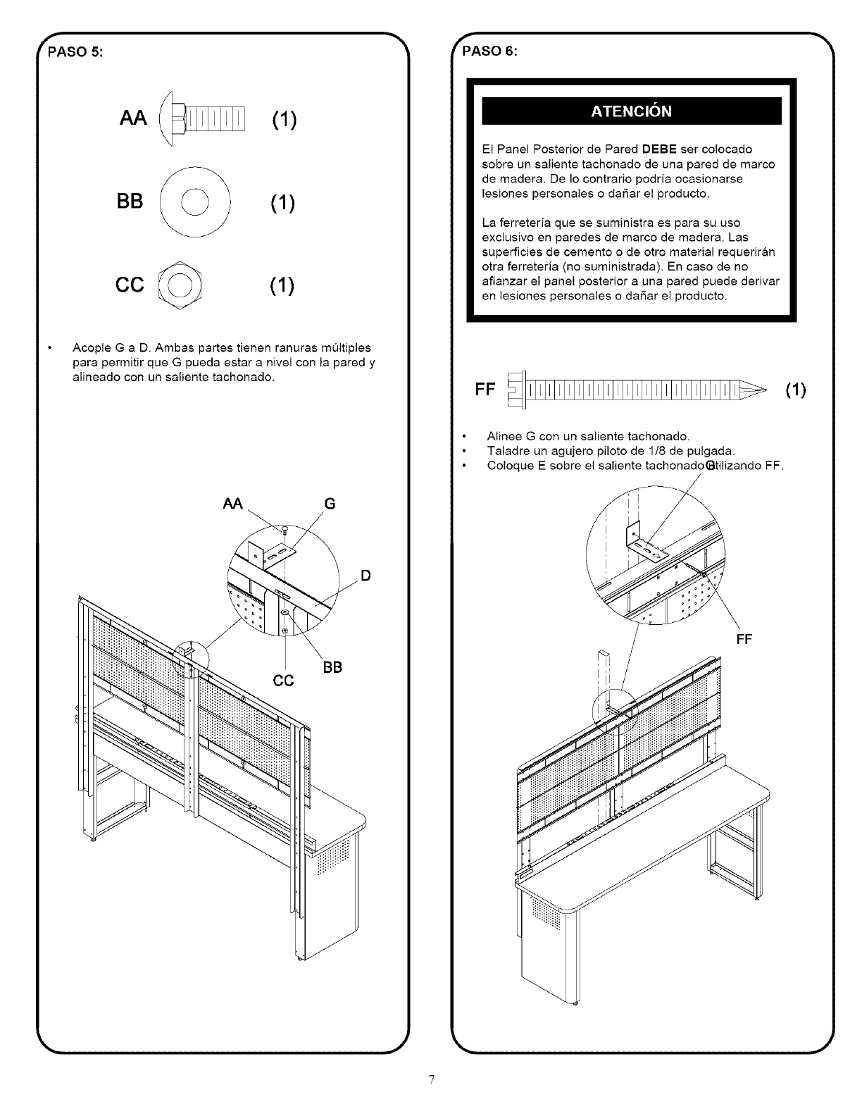 de Pared. De Io contrario, el Panel Posterior de Pared y el Banco de Trabajo podrian desestabilizarse y volcar. Esto podria causarle