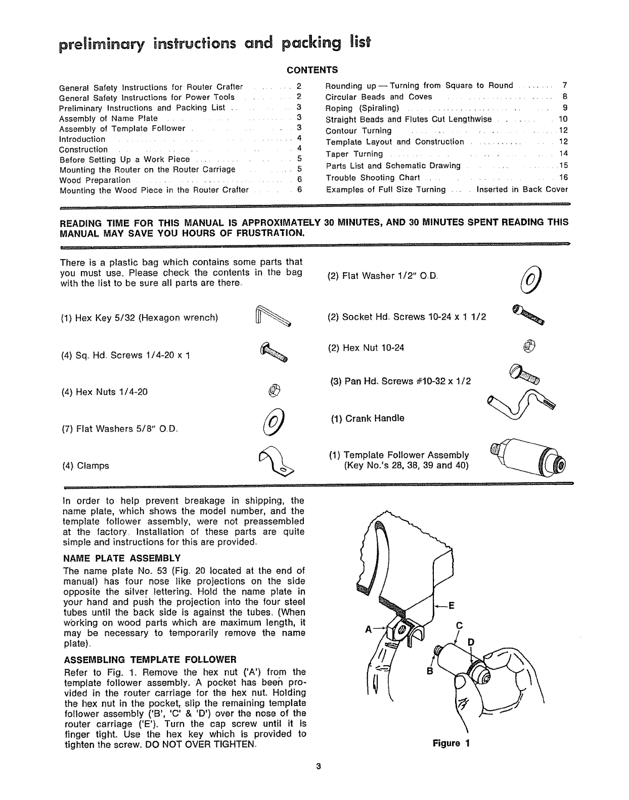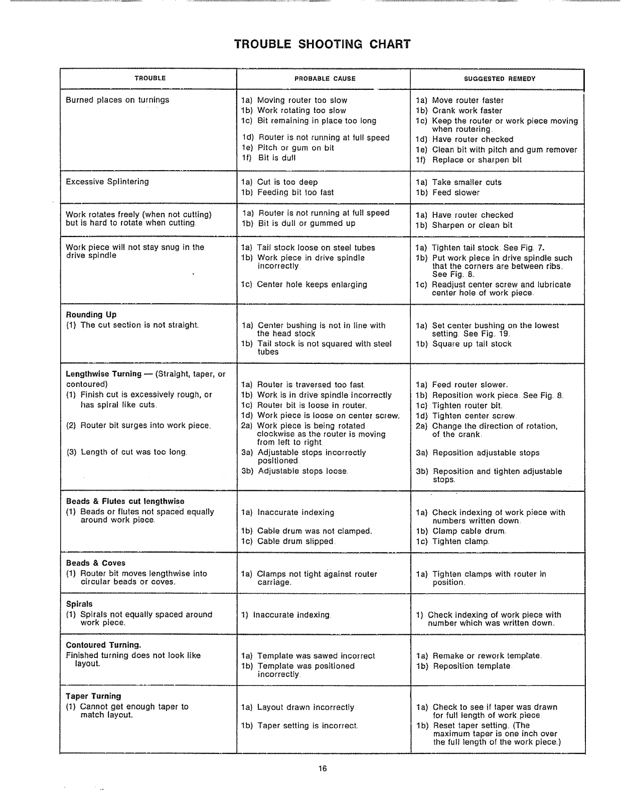 The Router' Crafter was designed for smooth operation, therefore, parts should never be forced to operate.