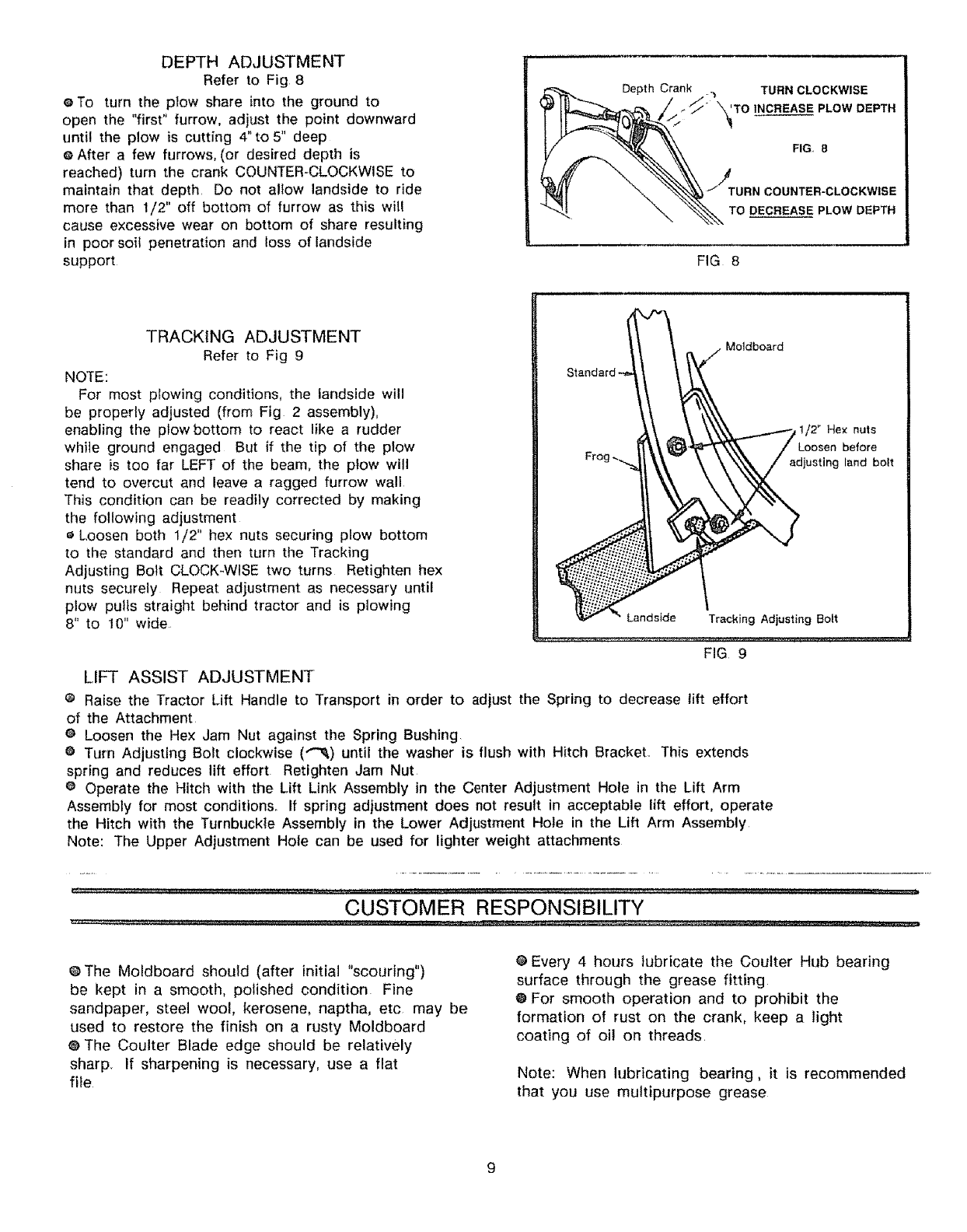 the owner's manual; and Moldboard Plow used for commercial or rental