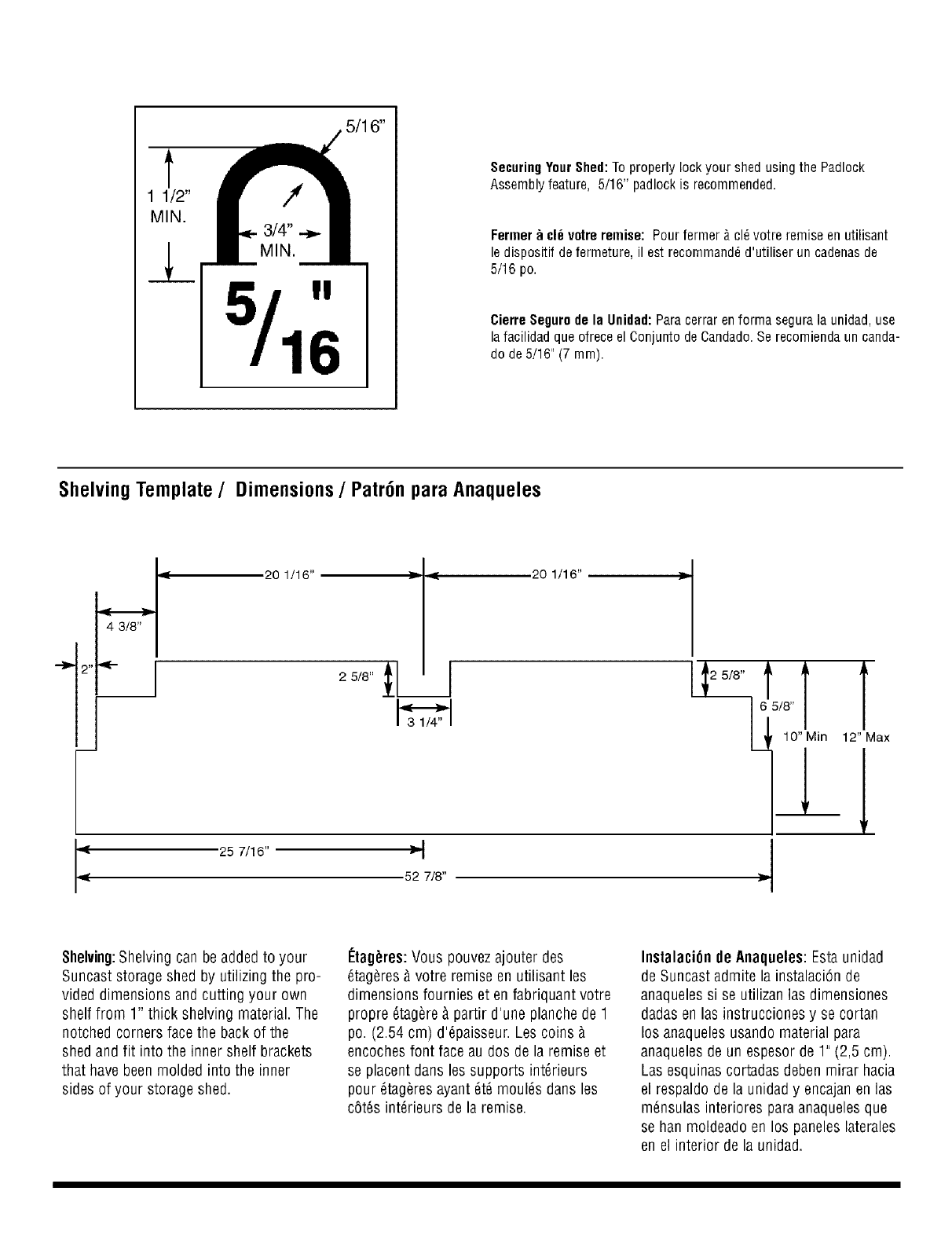 • Suncast is not responsible for damage caused by weather or misuse.