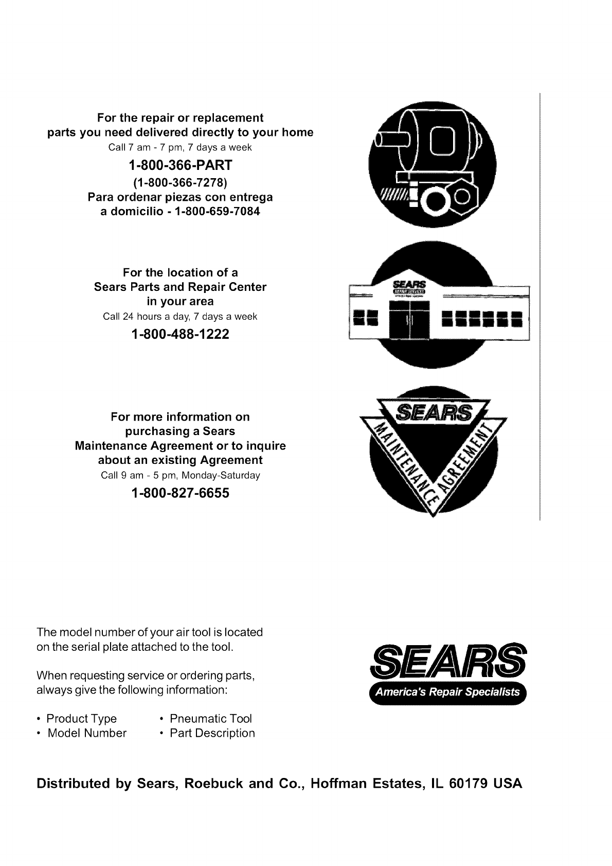 Distributed by Sears, Roebuck and Co., Hoffman Estates, IL 60179 USA