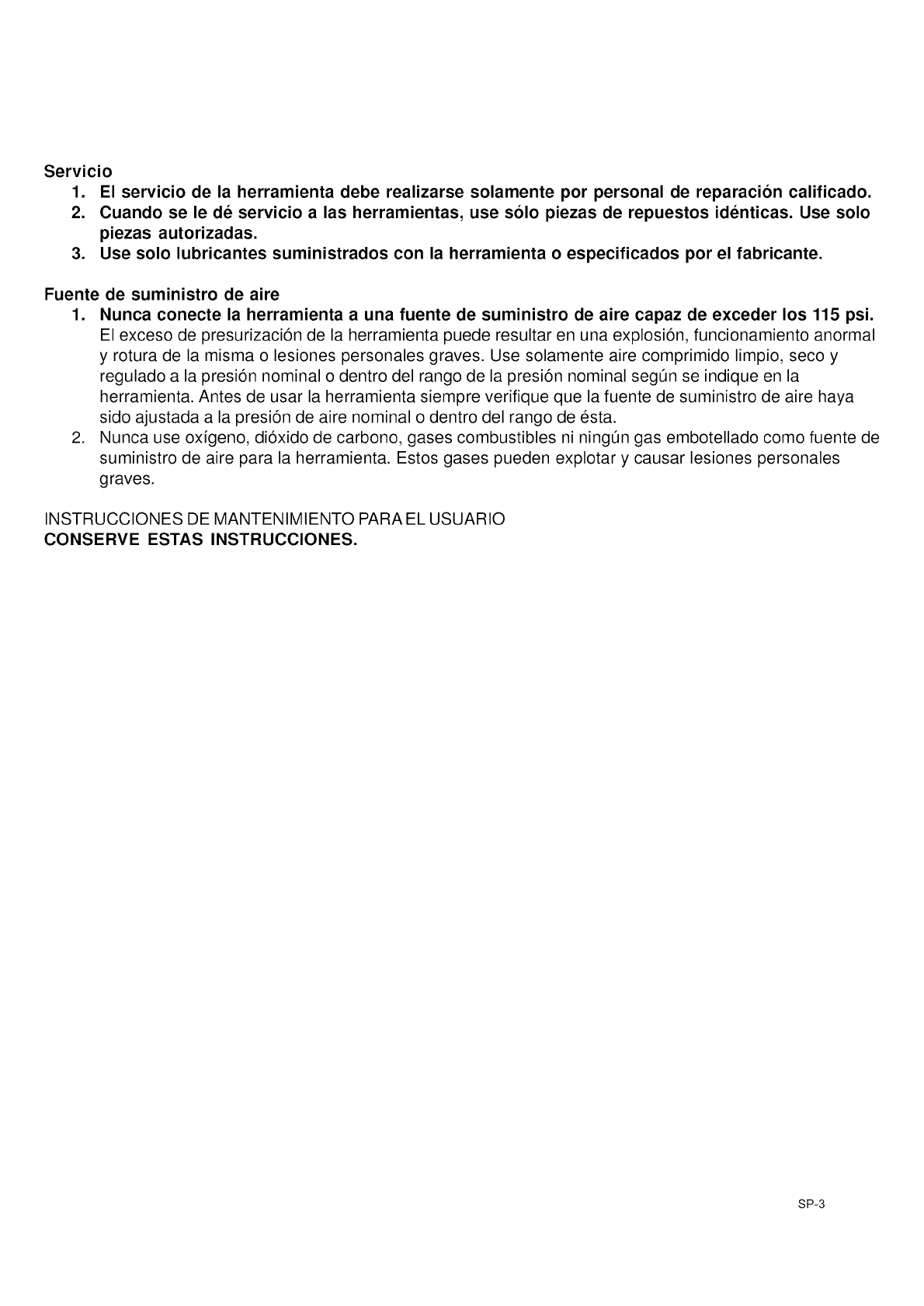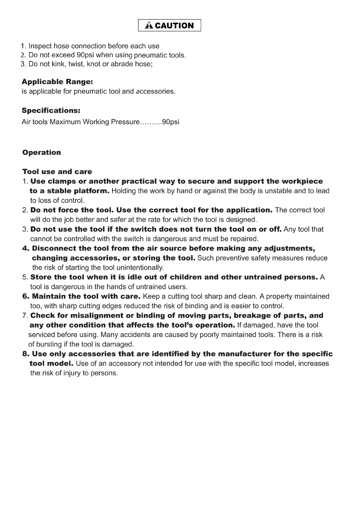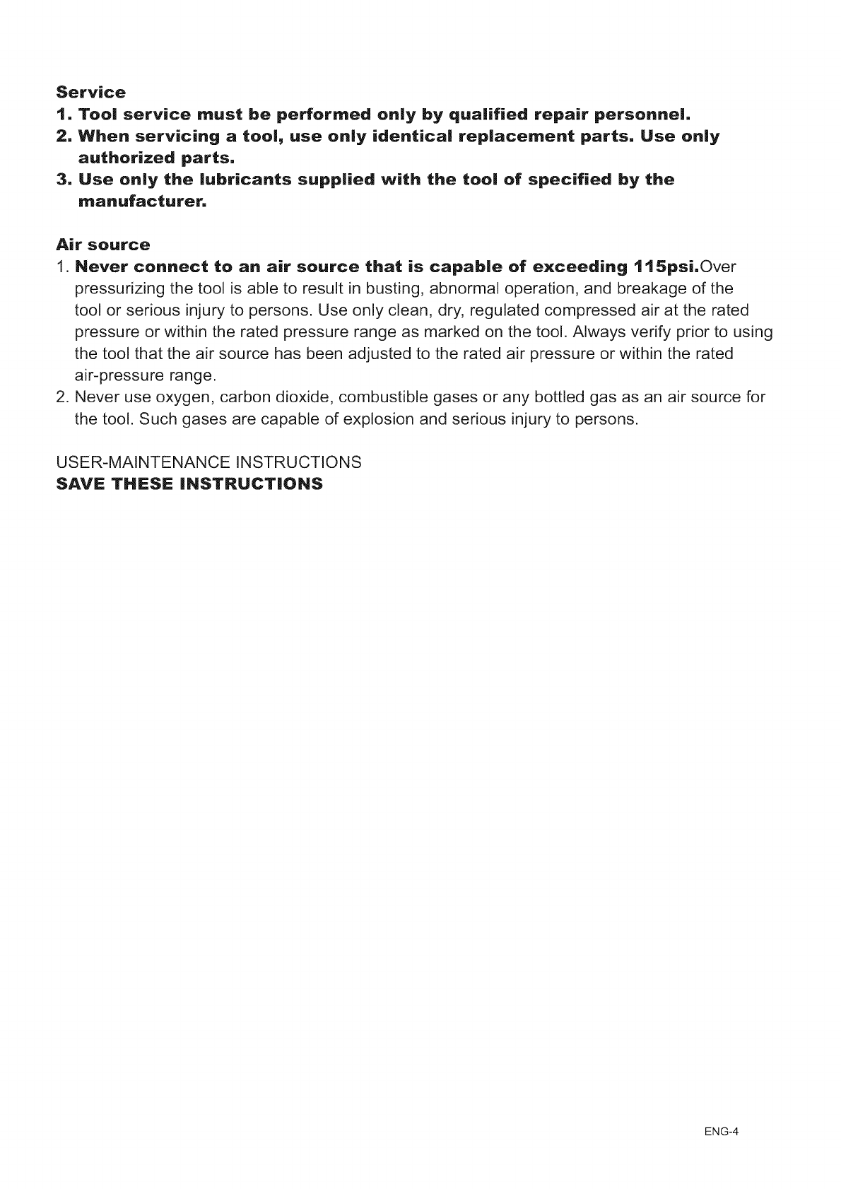 1. Never connect to an air source that is capable of exceeding 115psi.Over