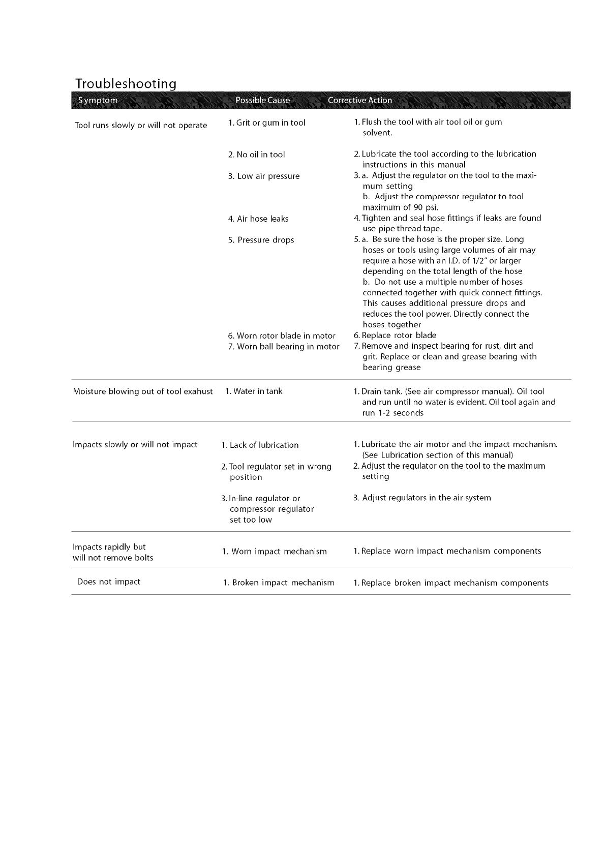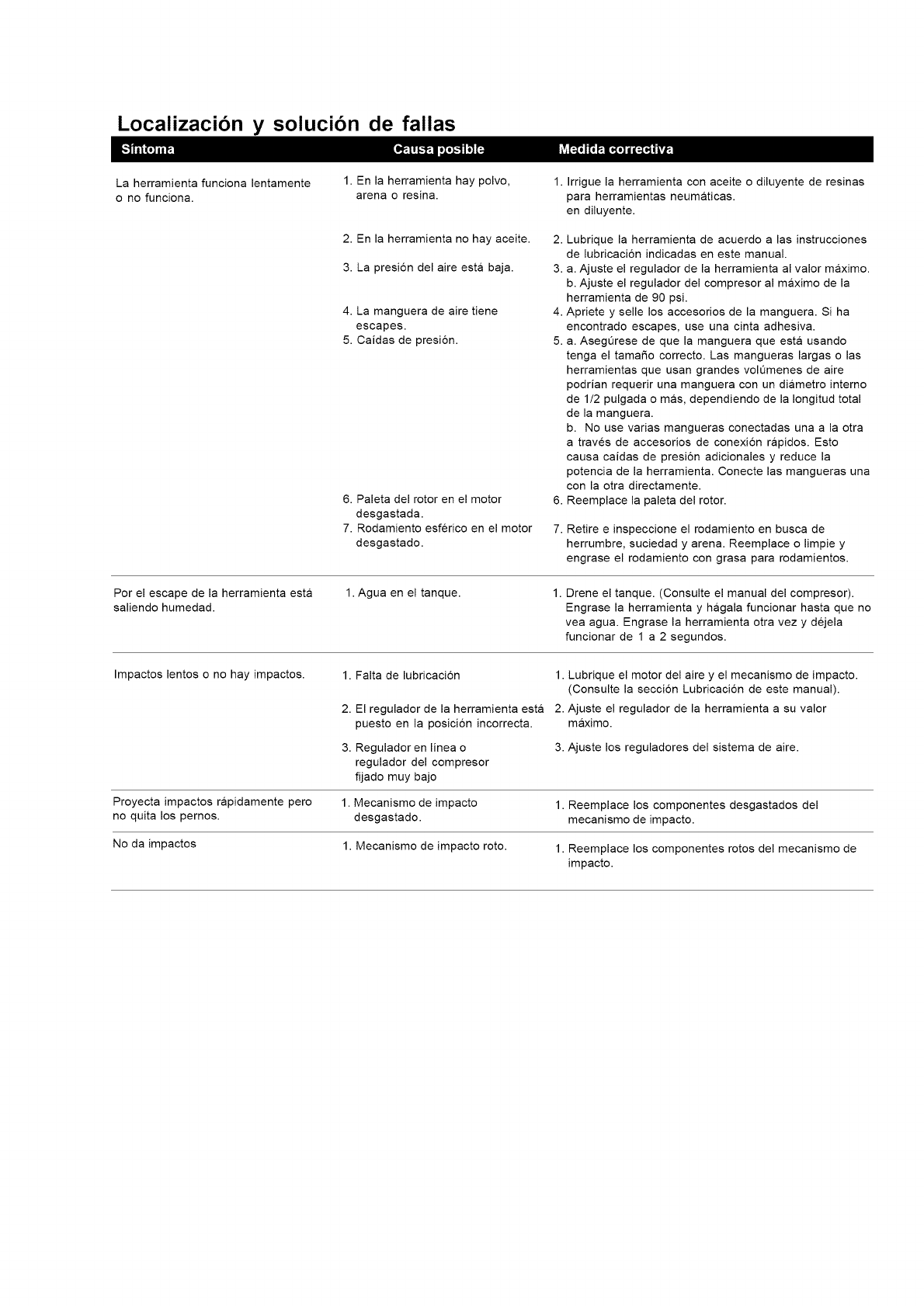 Impactos lentos o no hay impactos. 1. Falta de lubricaci6n