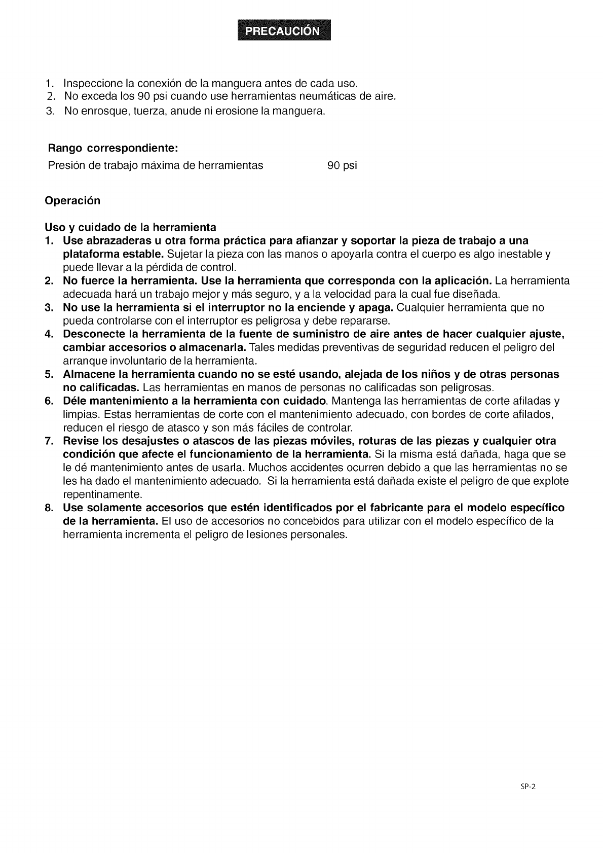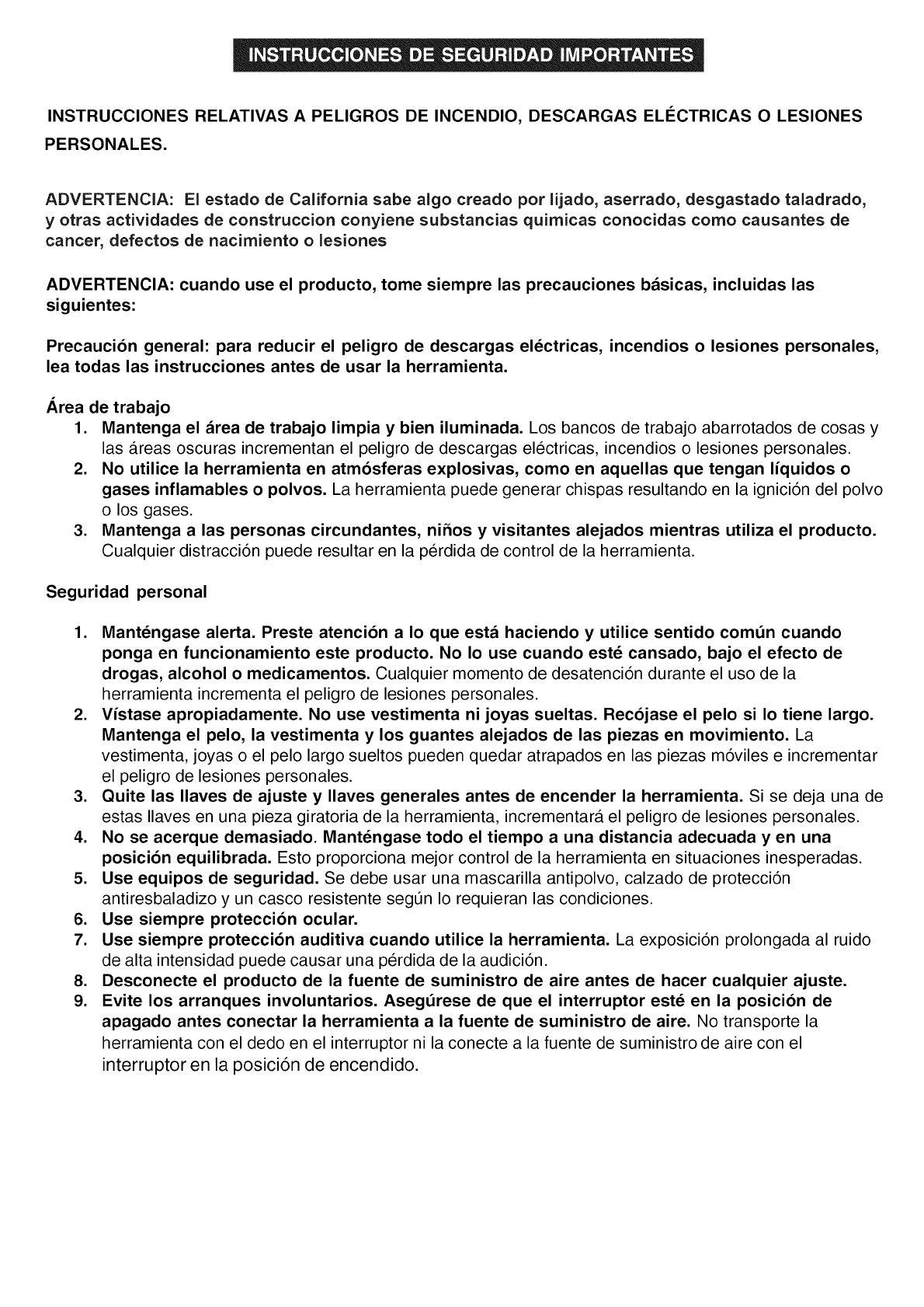 the air supply. Do not carry the tool with your finger on the switch or connect the tool to the