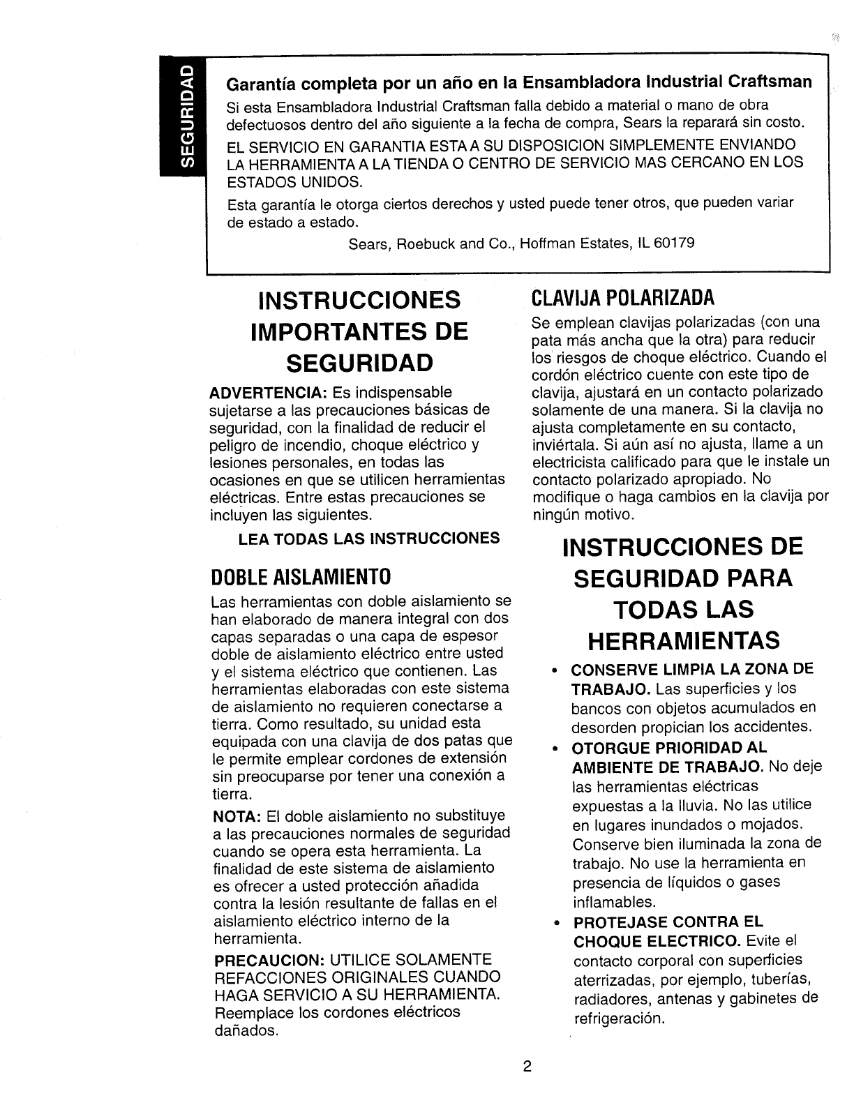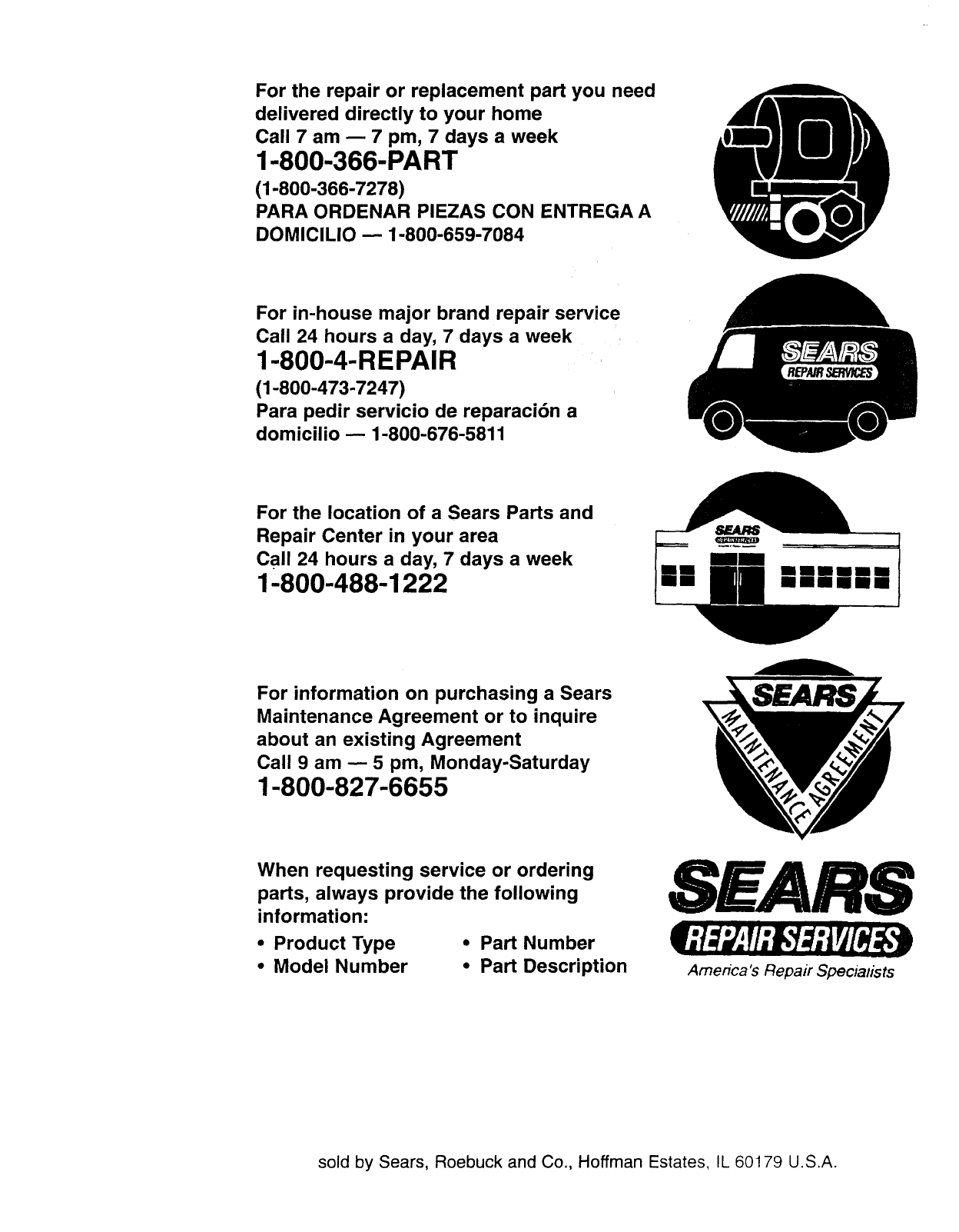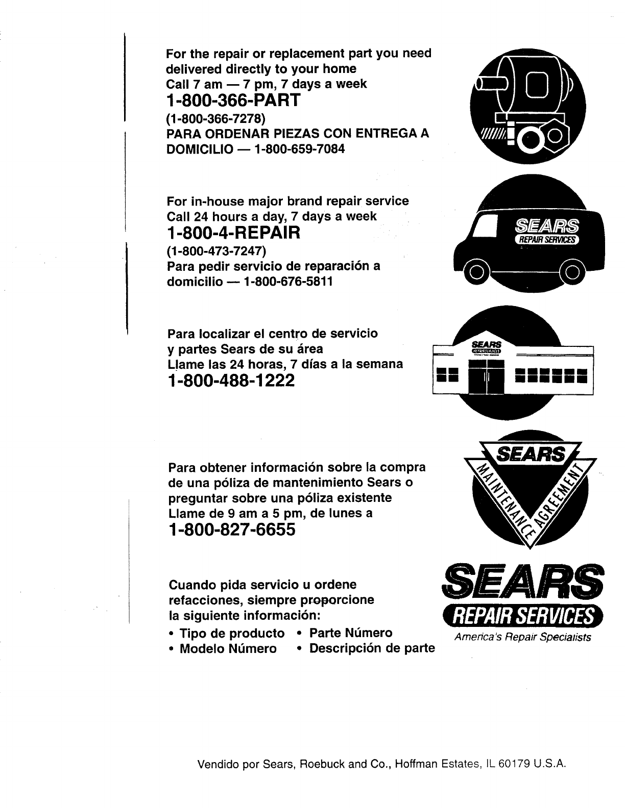 Vendido por Sears, Roebuck and Co., Hoffman Estates, IL 60179 U.S.A.