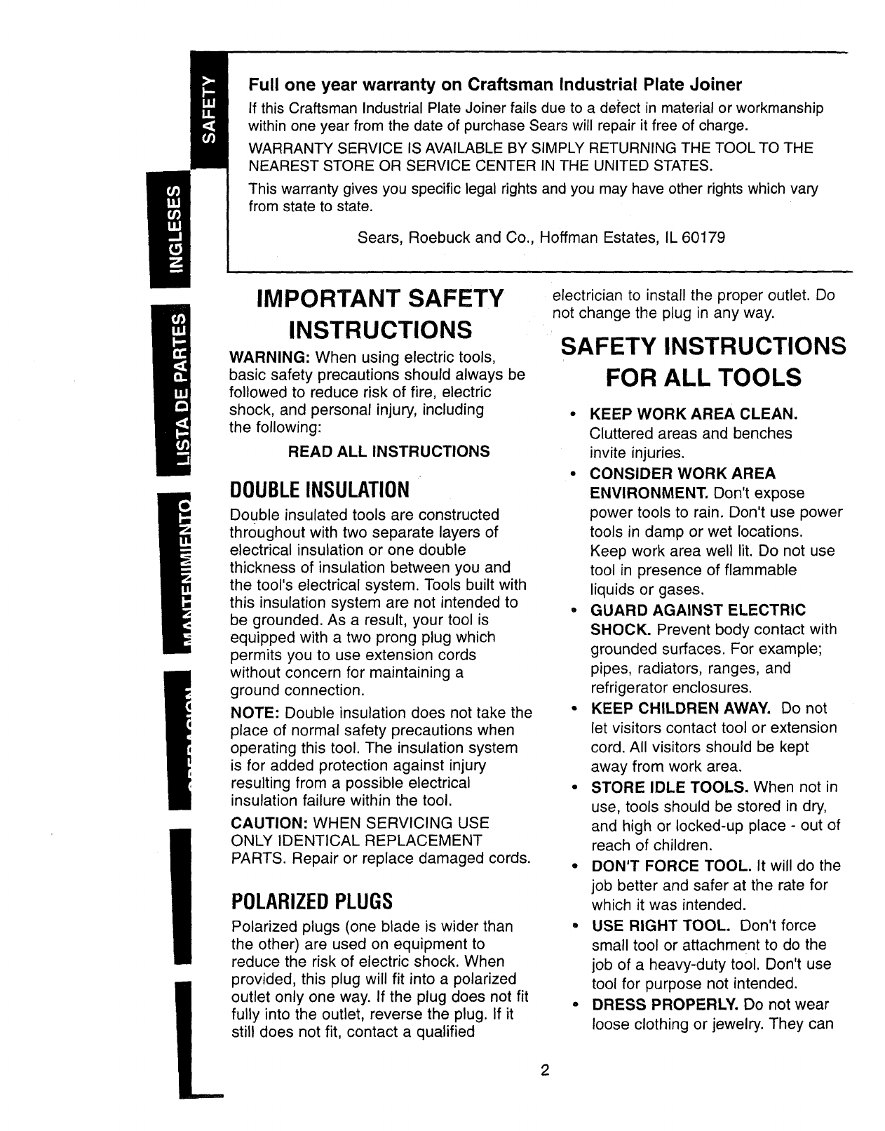 Craftsman 900277300 User Manual PLATE JOINER Manuals And Guides L0909319