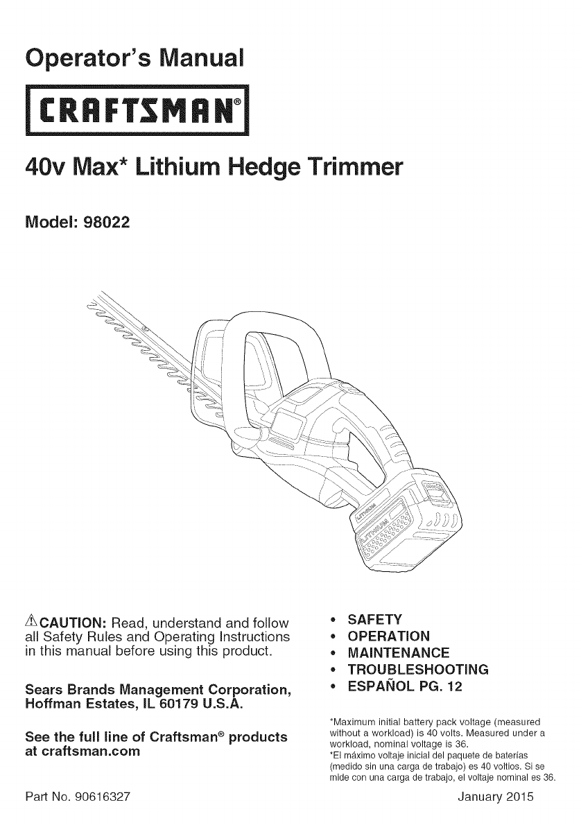 Craftsman 90098022 User Manual HEDGE TRIMMER Manuals And Guides 1506068L