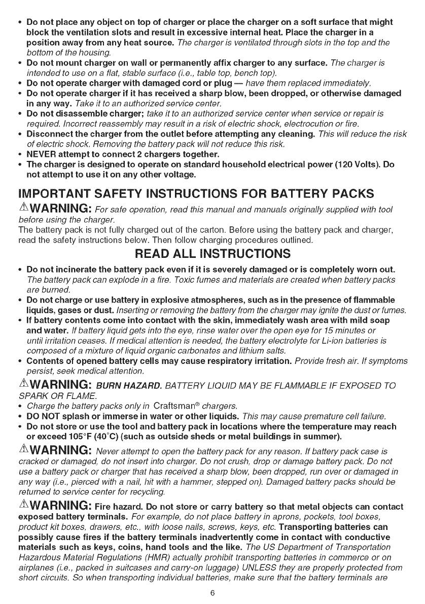 SAVE ALL WARNINGS AND iNSTRUCTiONS FOR FUTURE REFERENCE
