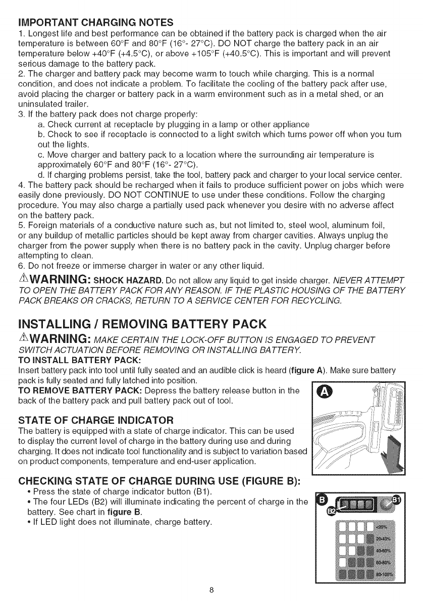 power source and/or battery pack, picking up or carrying the tool. Carrying power tools with