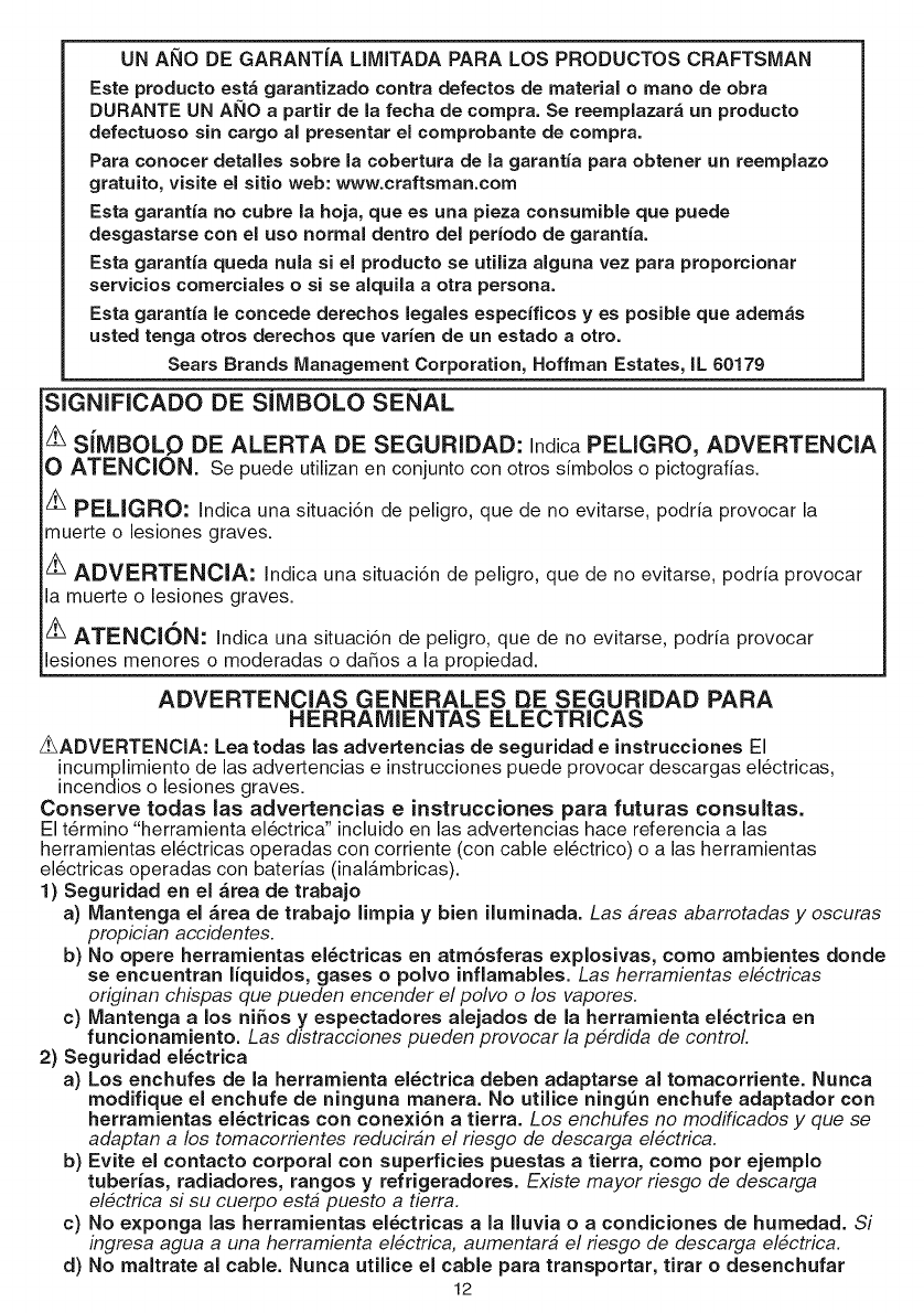 de mantenimiento autorizado de Craftsman@. o a un comerciante minorista local para que se