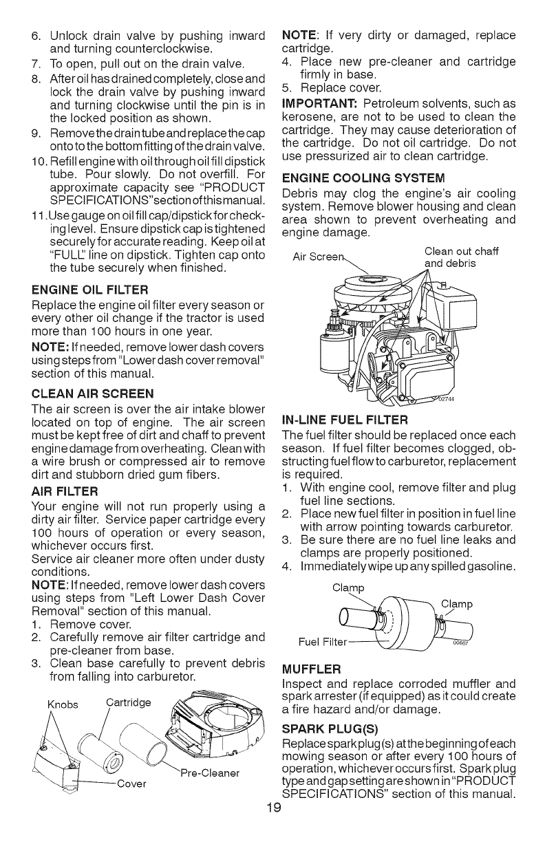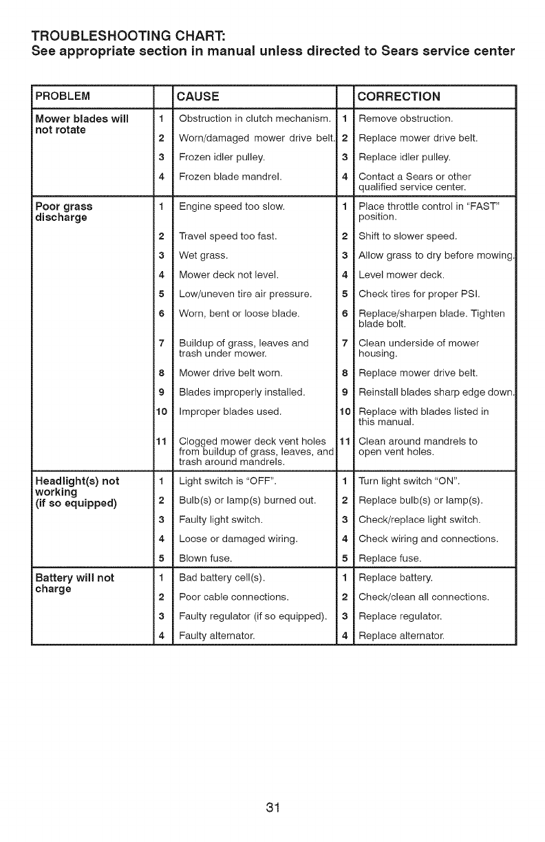 but not limited to blades, spark plugs, air cleaners, belts, and oil filters.