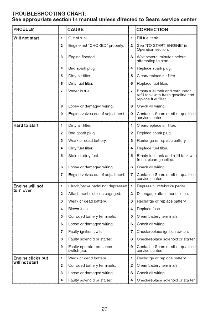 • Repairs necessary because of operator negligence, including but not limited to, electrical and mechanical