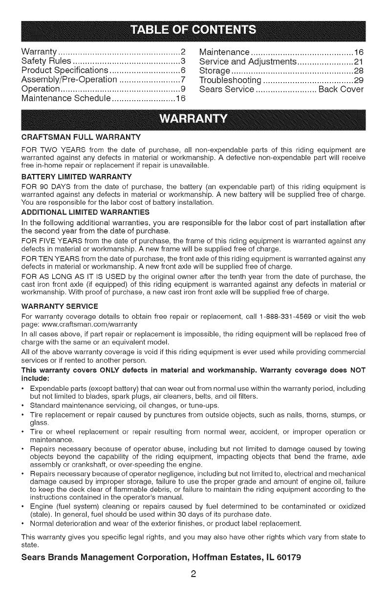 Craftsman 917203830 User Manual LAWN TRACTOR Manuals And Guides 1402677L