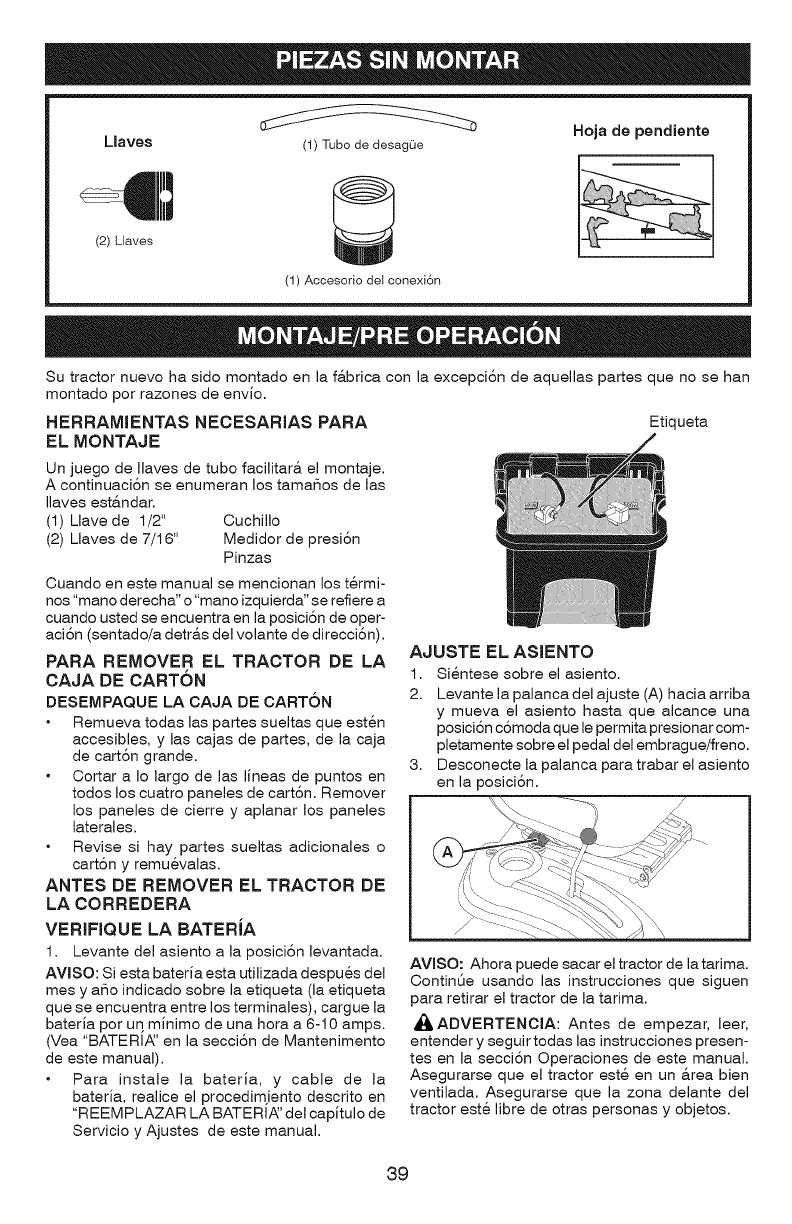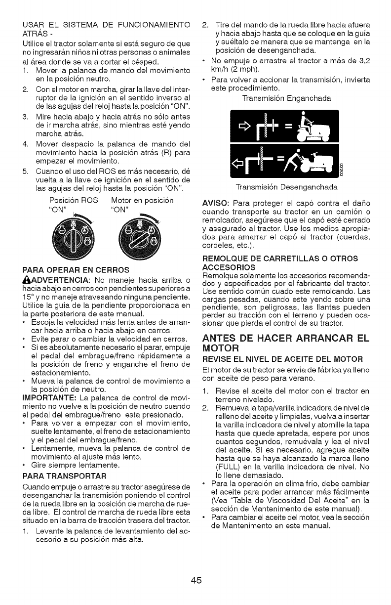 _ DVERTENCIA: Para evitar daSos graves, haga funcionar su tractor arriba