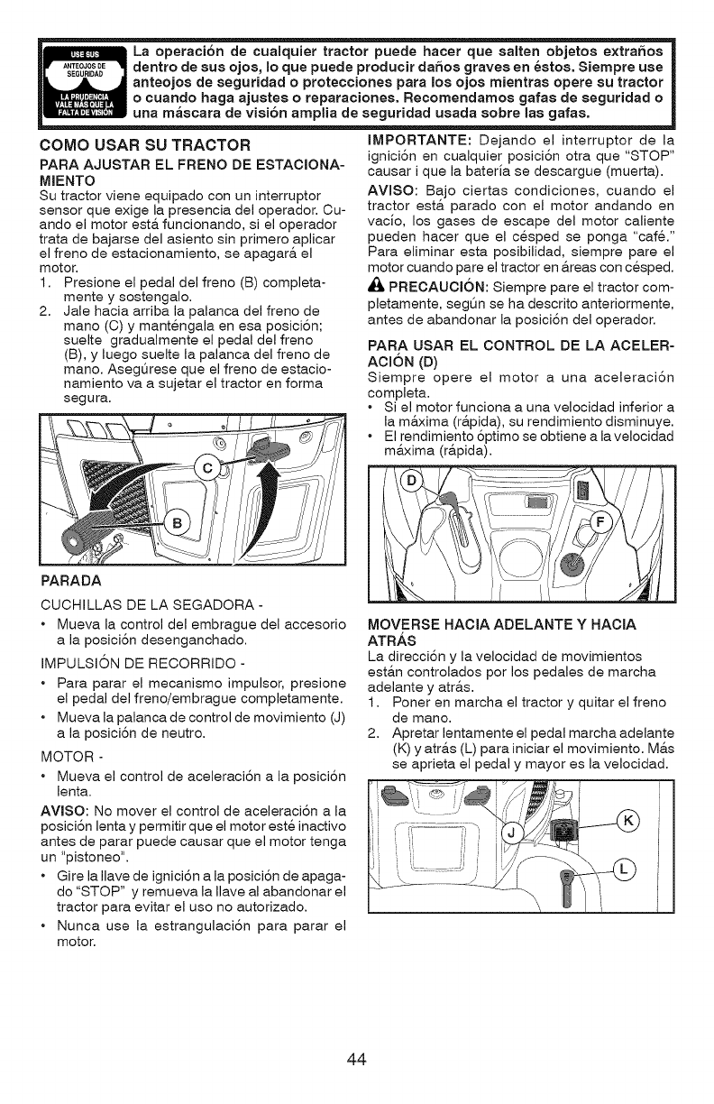 _ DVERTENClA: Para evitar daSes graves, haga funcionar su tractor arriba