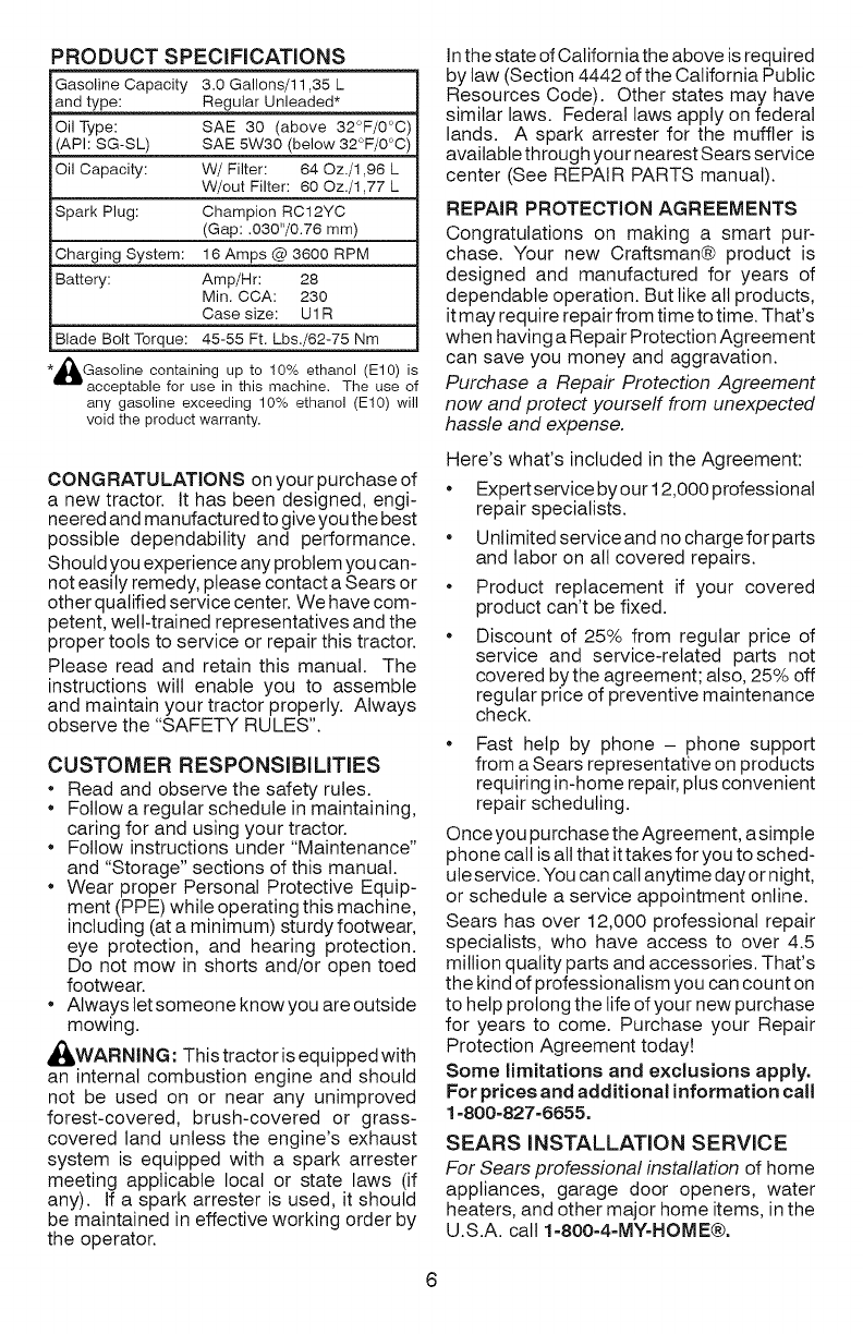 Craftsman 917203910 User Manual LAWN TRACTOR Manuals And Guides 1402379L