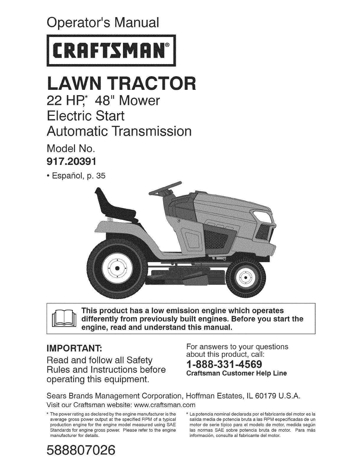 User Manual: Craftsman 917203911 917203911 CRAFTSMAN LAWN TRACTOR - Manuals and Guides View the owners manual for your CRAFTSMAN LAWN TRACTOR #917203911. Home:Lawn & Garden Parts:Craftsman Parts:Craftsman LAWN TRACTOR Manual