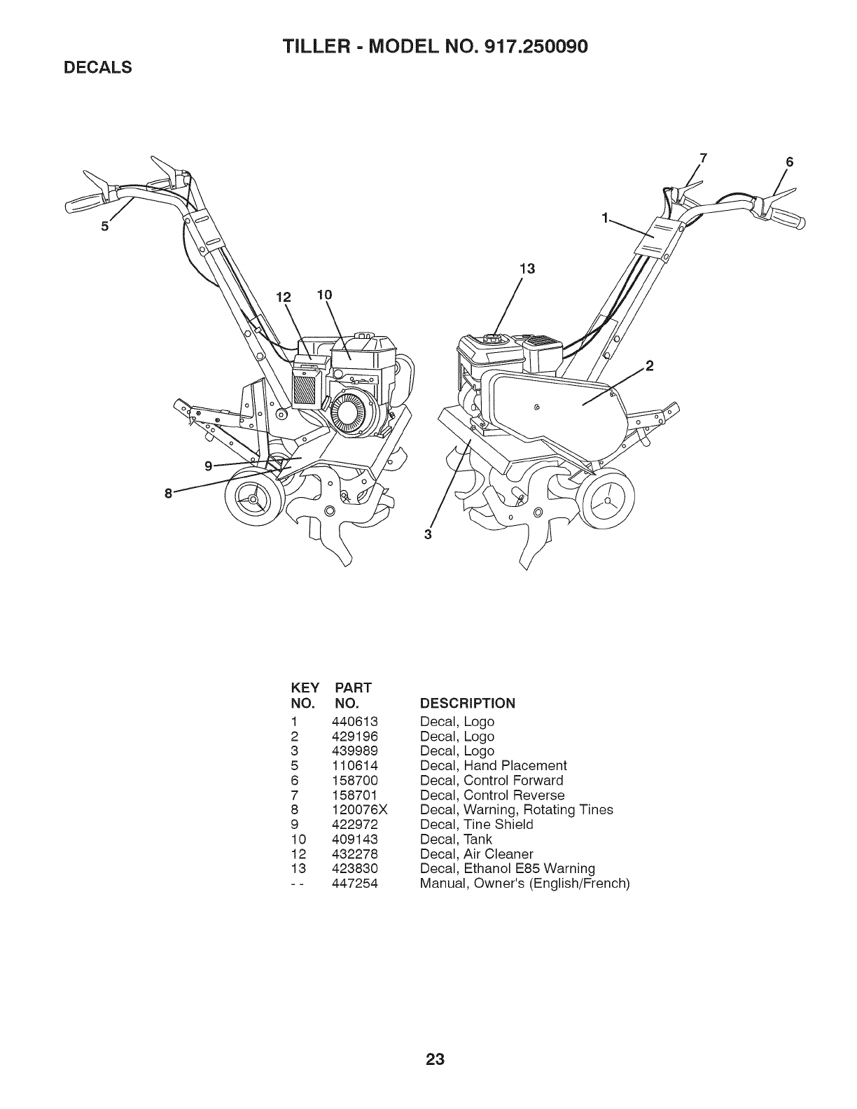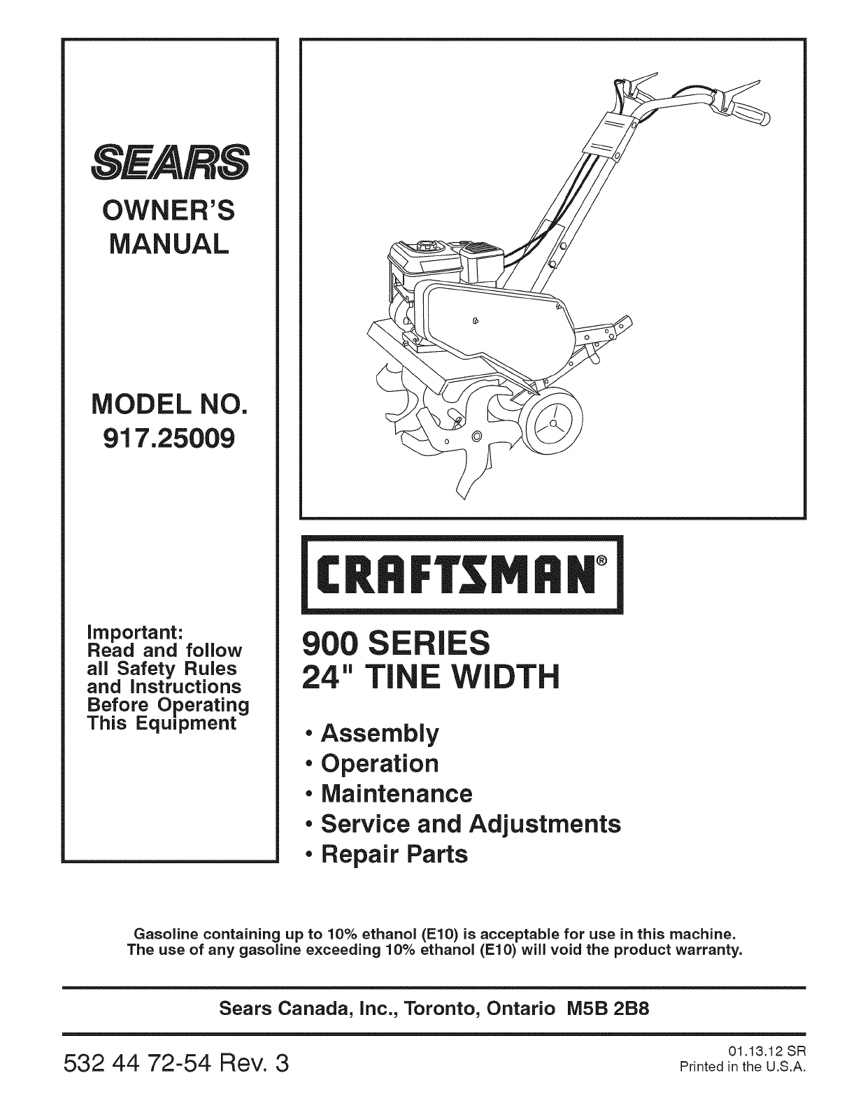 Craftsman 91725009 User Manual FRONT TILLER Manuals And Guides 1201331L