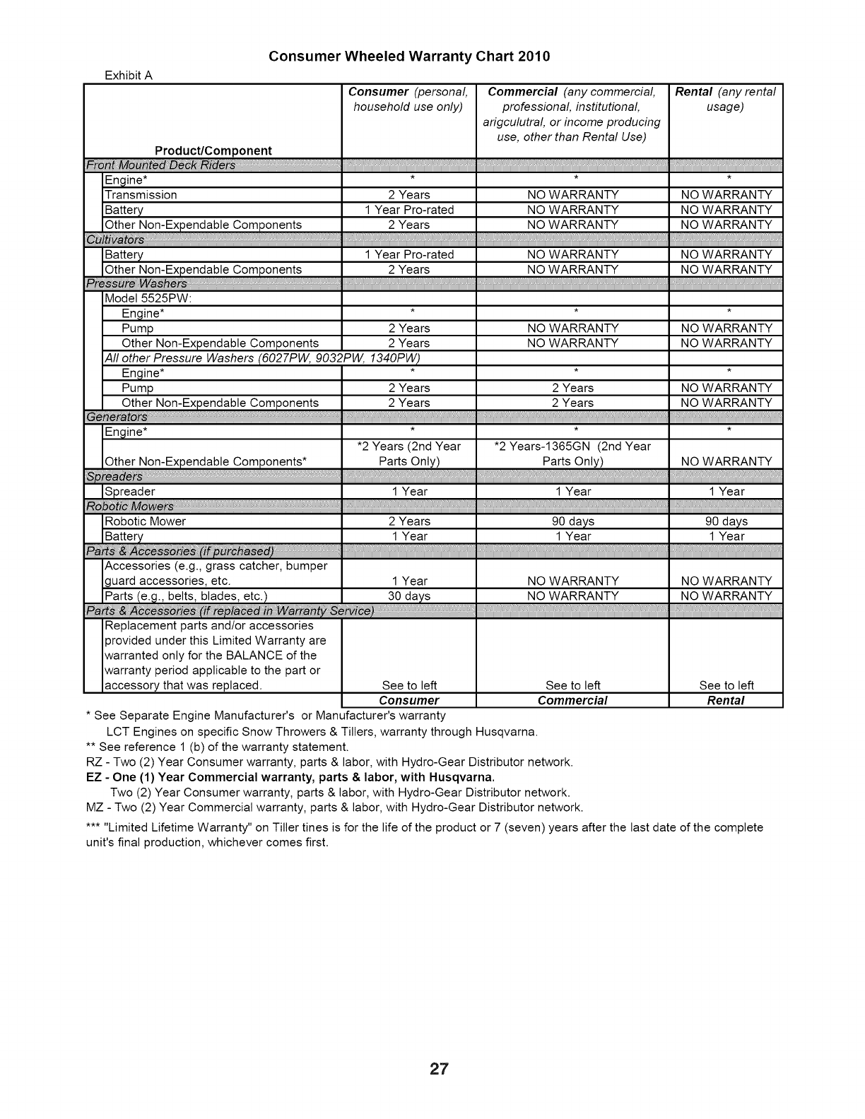 RZ - Two (2) Year Consumer warranty, parts & labor, with Hydro-Gear Distributor network.