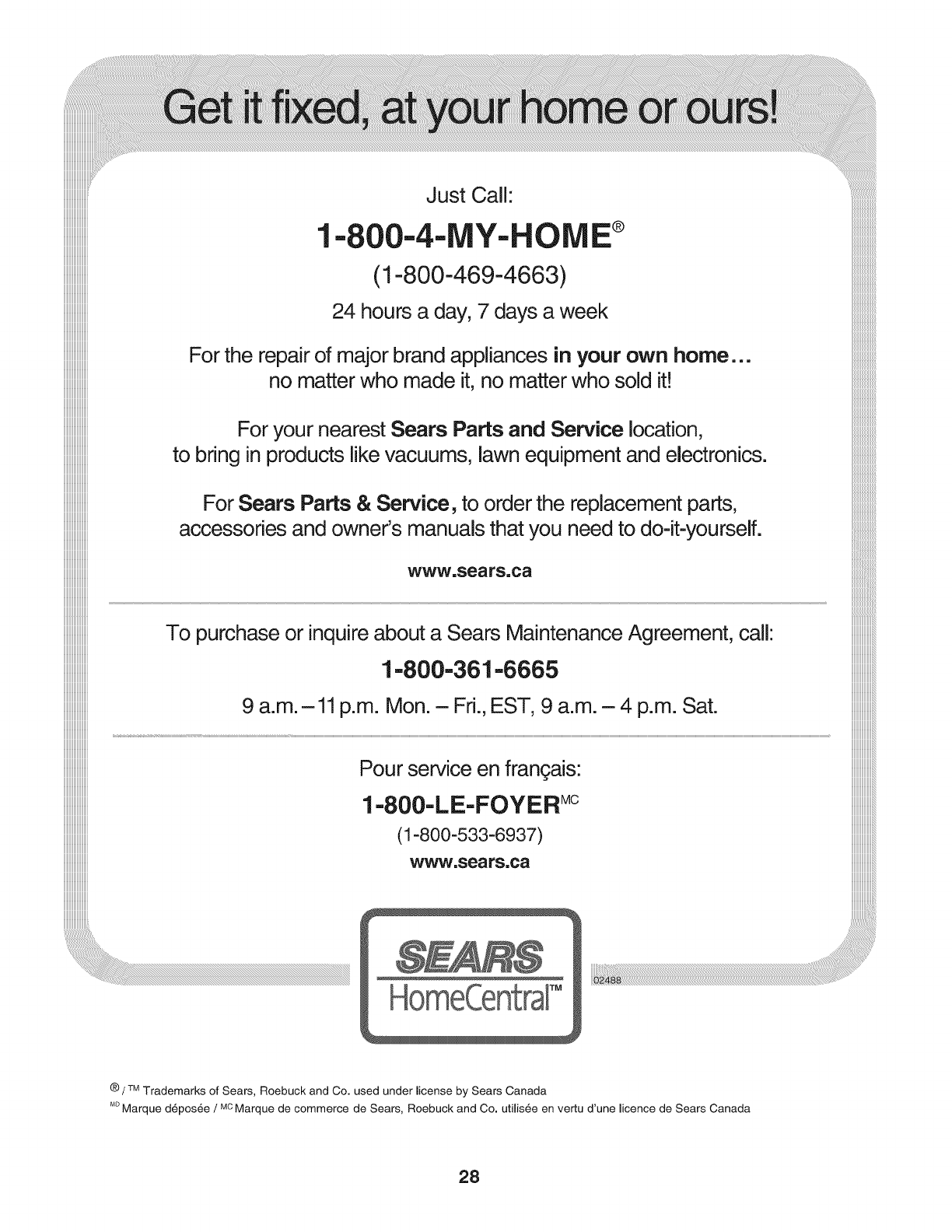 ®/'rM Trademarks of Sears, Roebuck and Co. used under license by Sears Canada