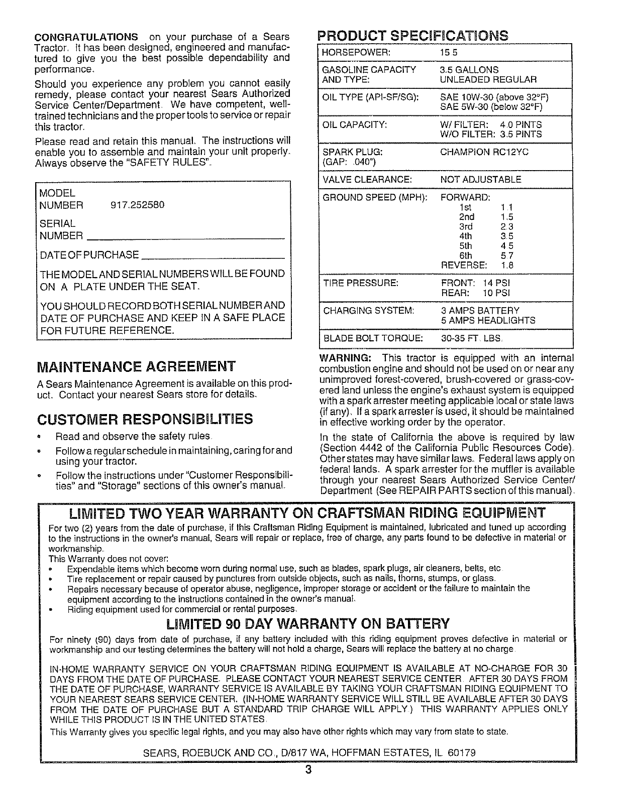 User Manual: Craftsman 917252580 917252580 CRAFTSMAN Lawn, Tractor - Manuals and Guides View the owners manual for your CRAFTSMAN Lawn, Tractor #917252580. Home:Lawn & Garden Parts:Craftsman Parts:Craftsman Lawn, Tractor Manual