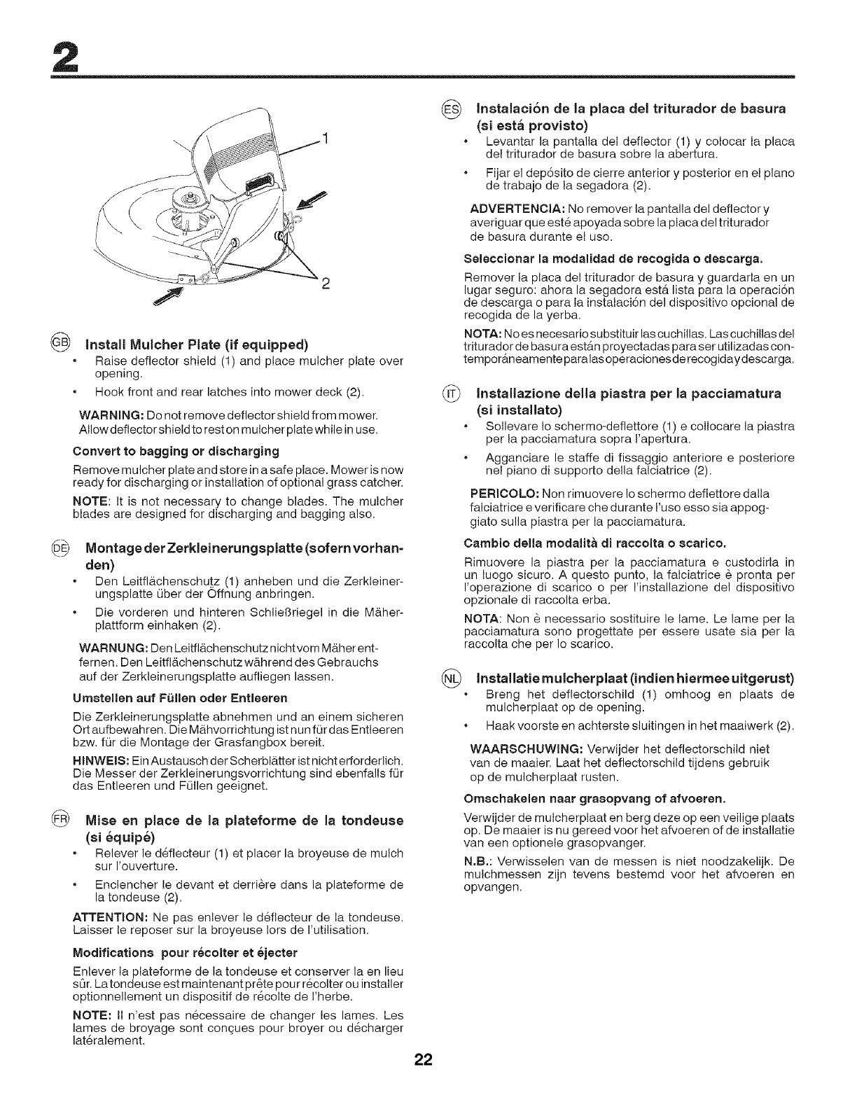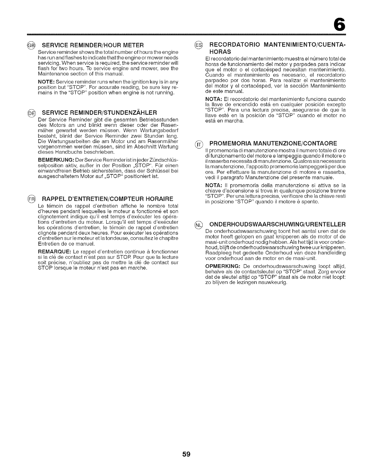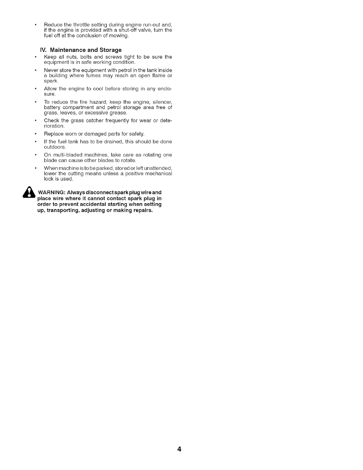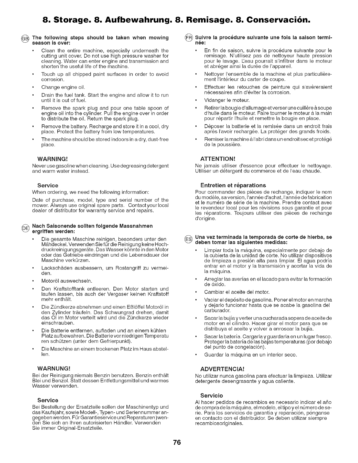 Tenere il tagliaerba al chiuso in locale asciutto.