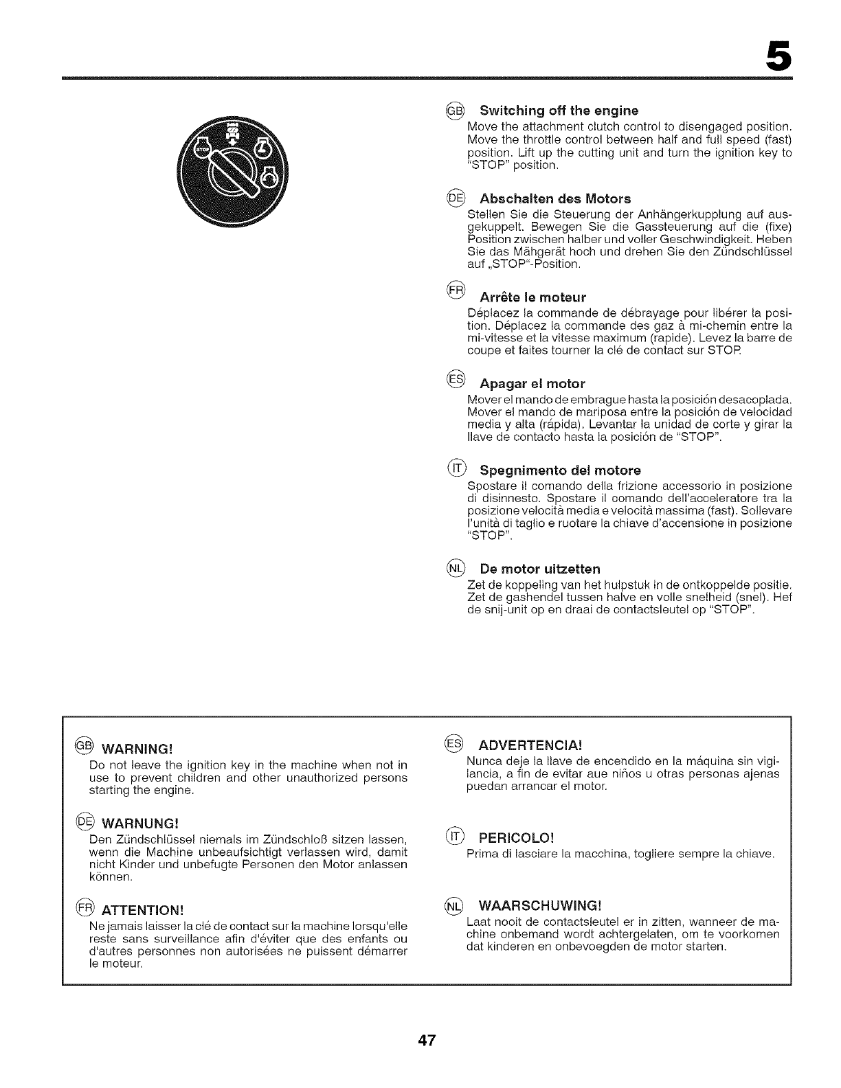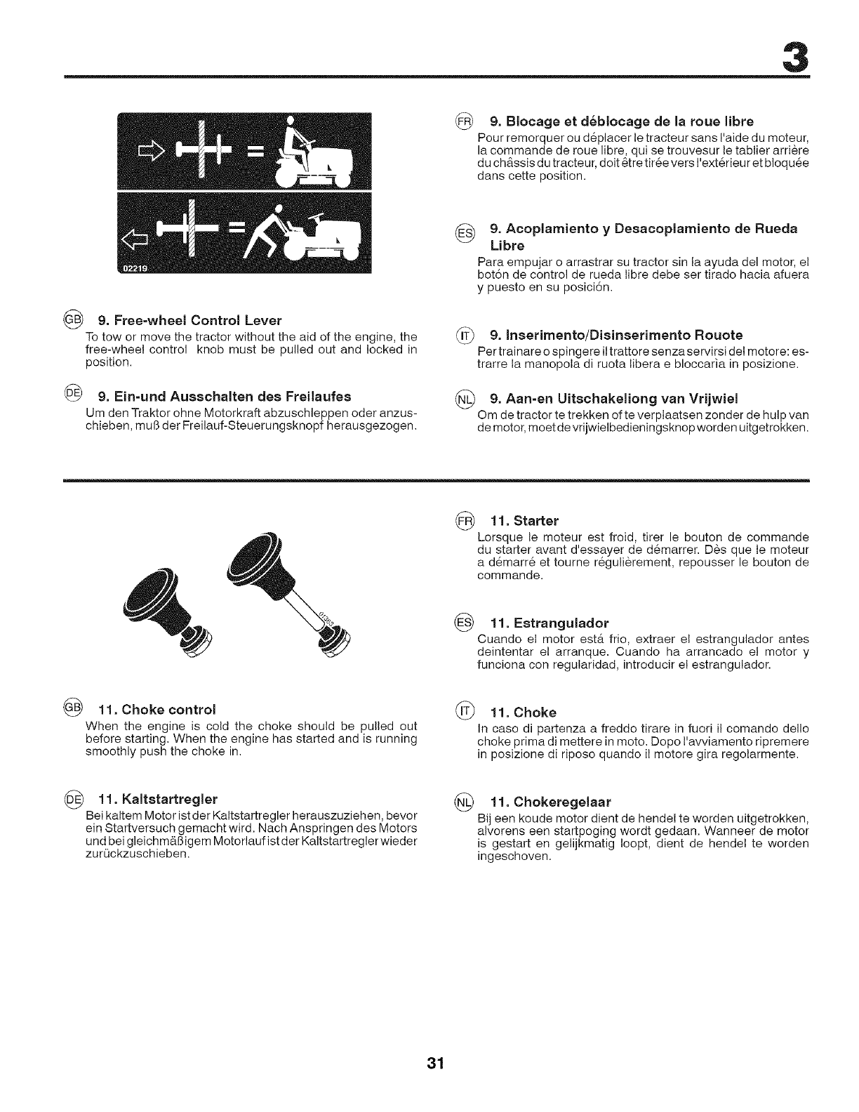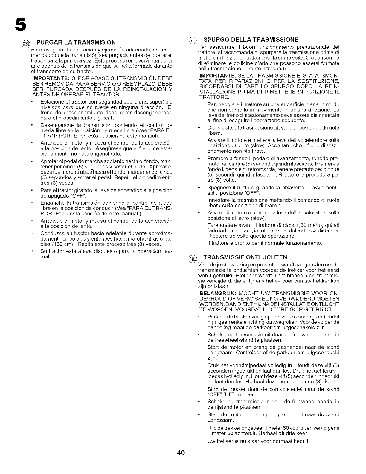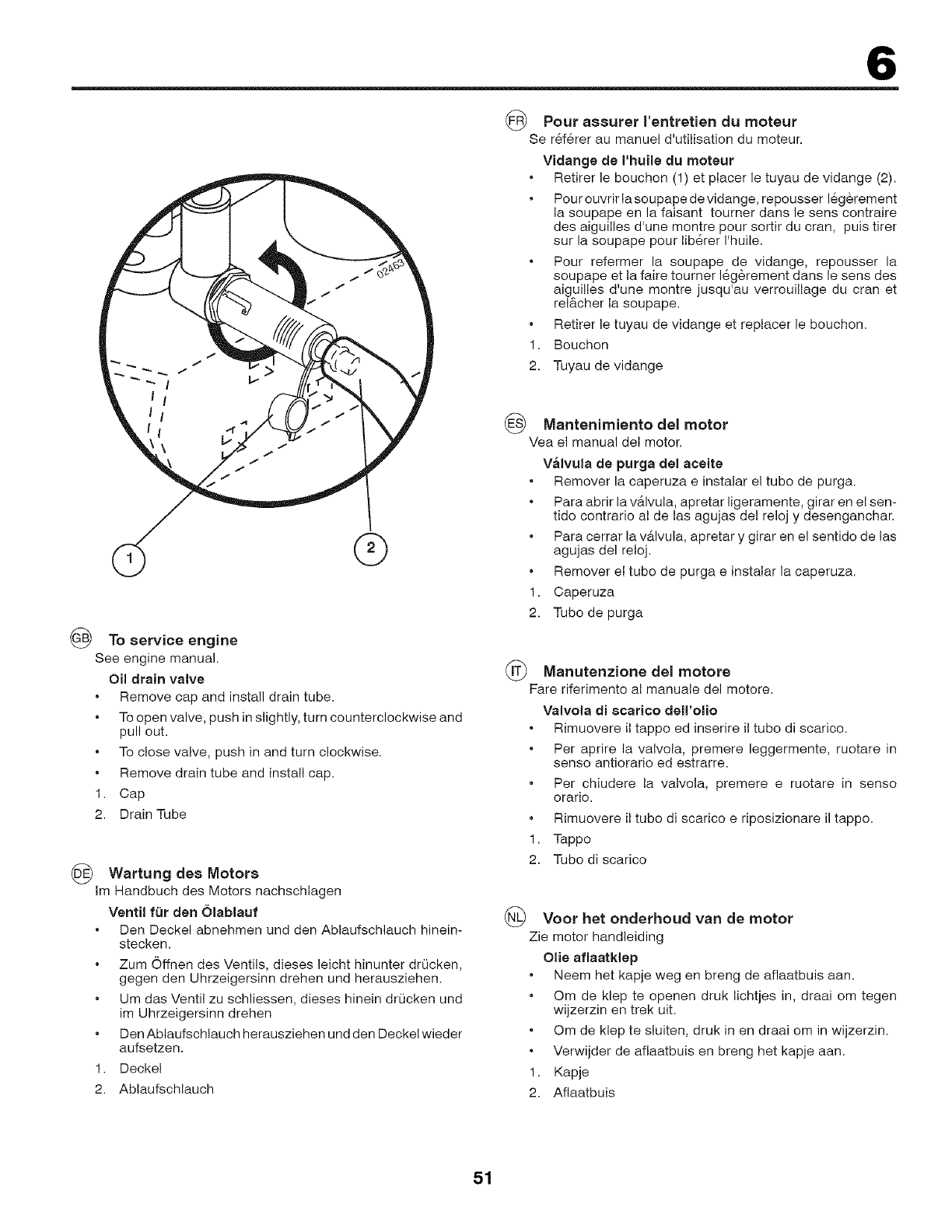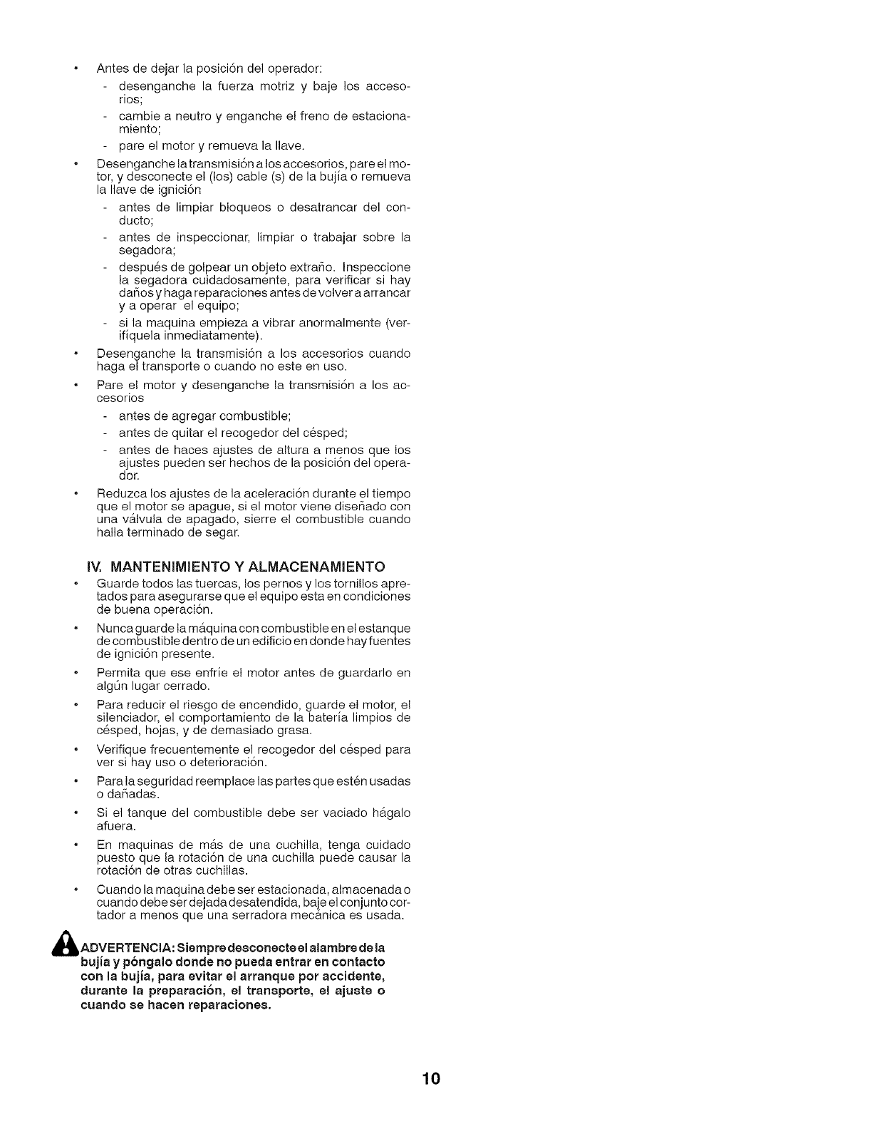 Vaciar el dep6sito de gasolina. Poner el motor en marcha