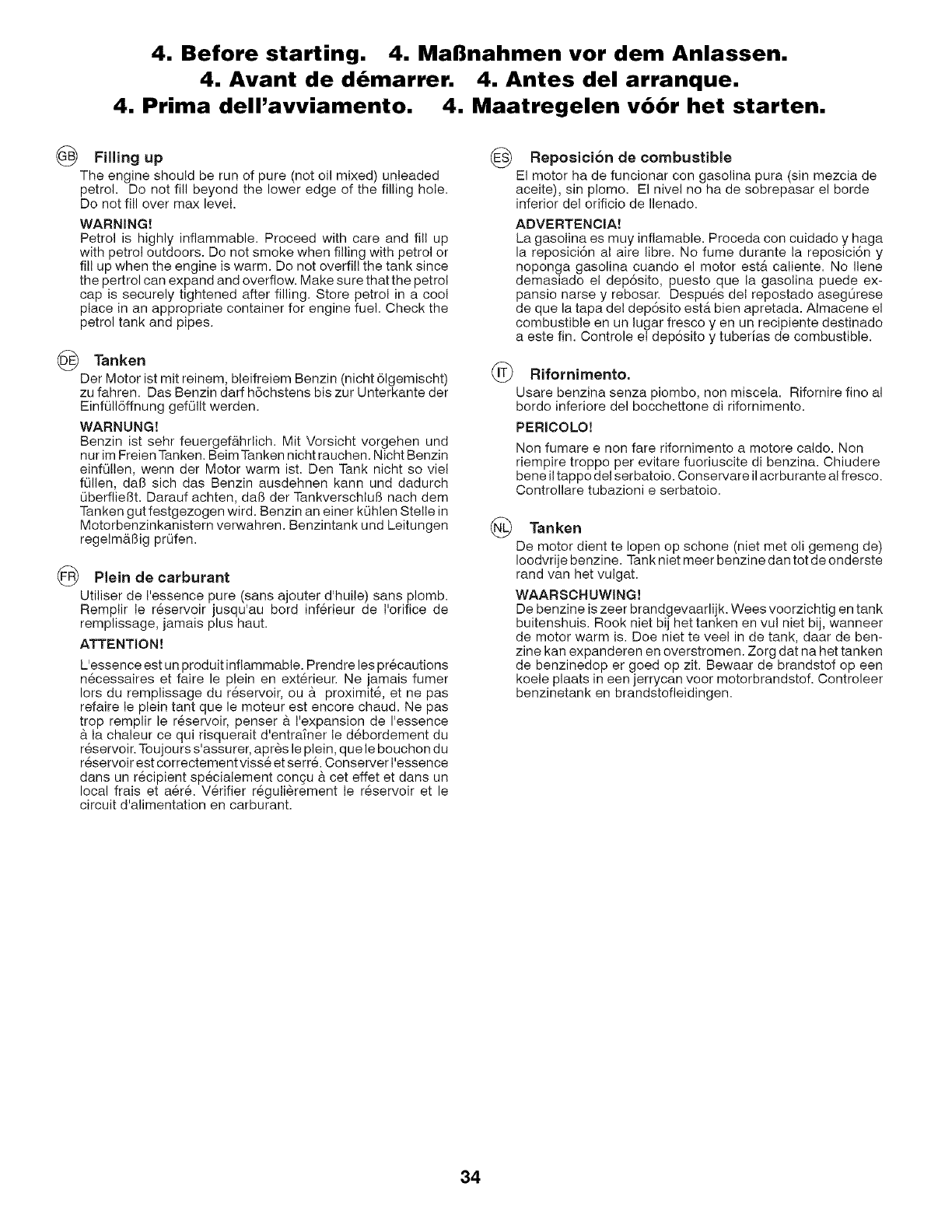 Maatregelen v66r het starten. 34