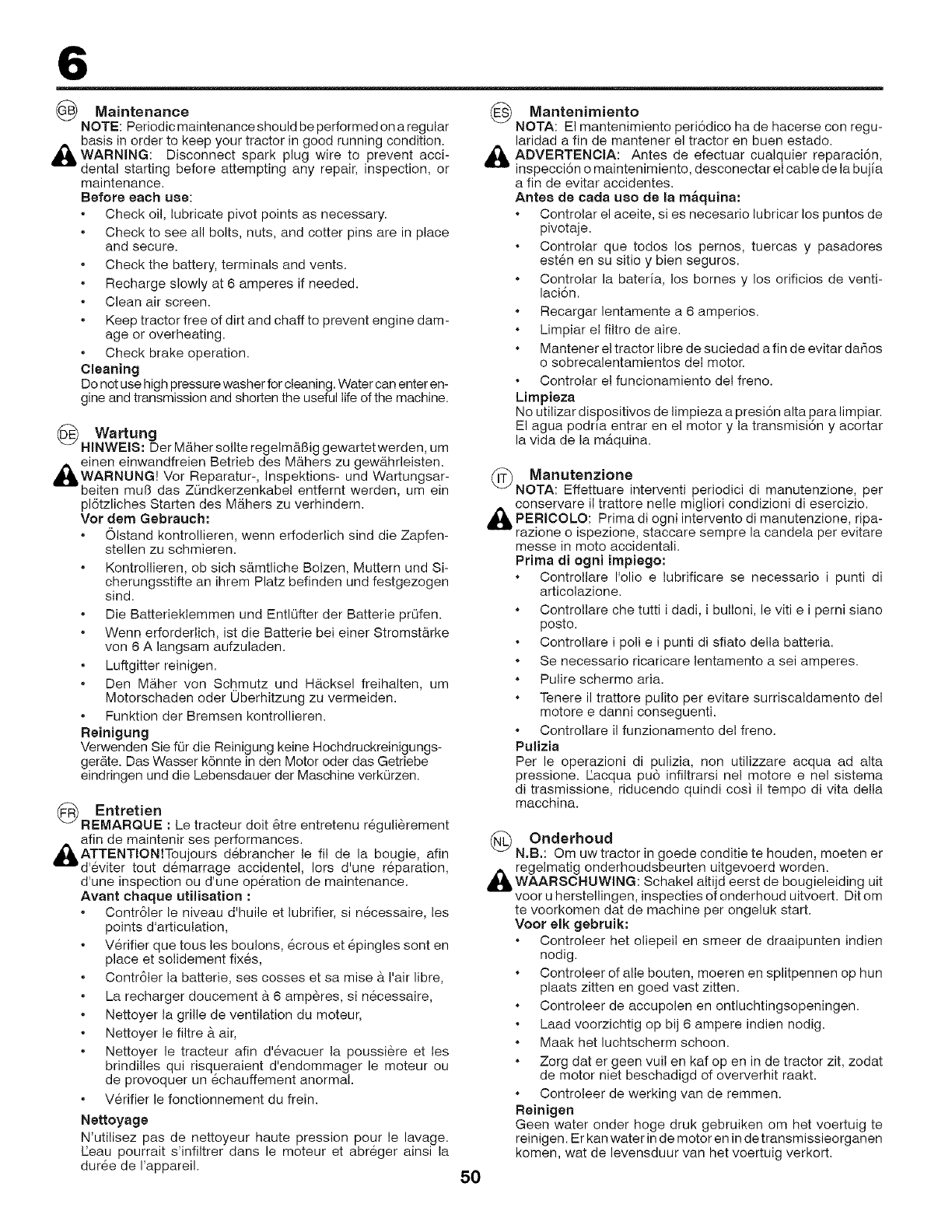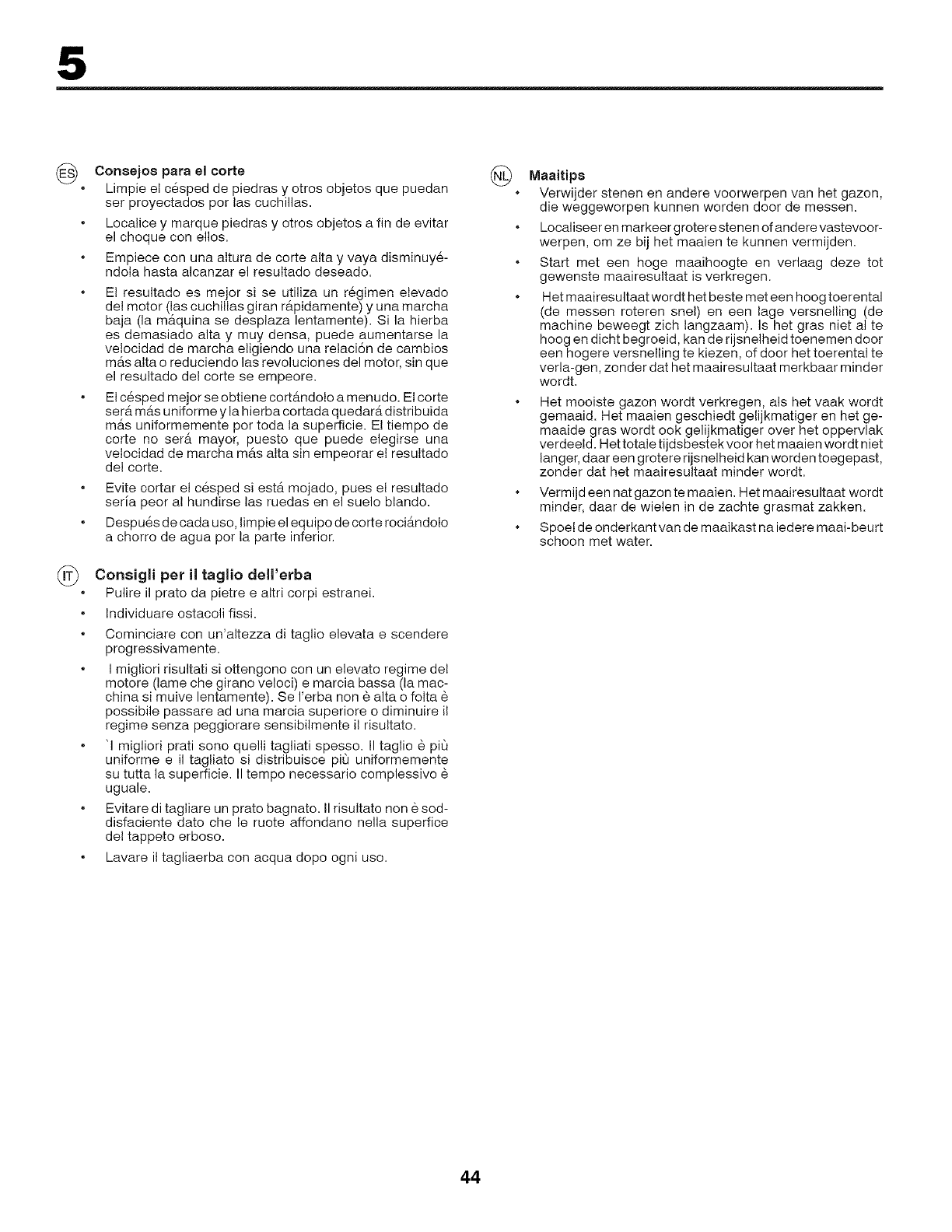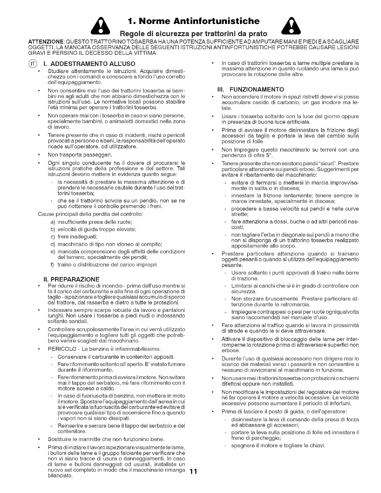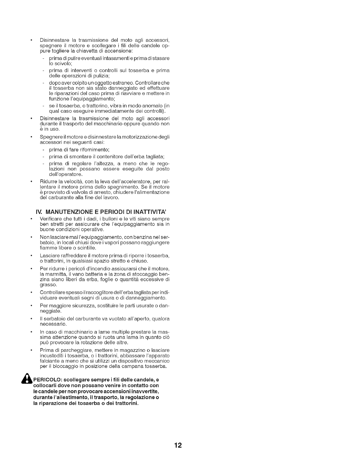 della falciatrice. Per le operazioni di pulizia, non utilizzare