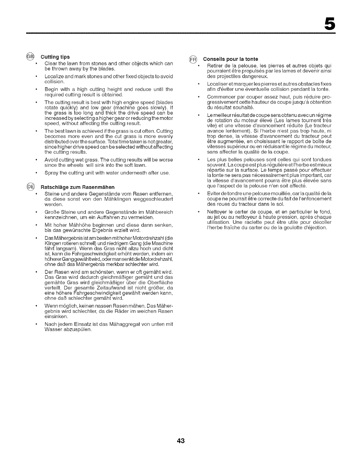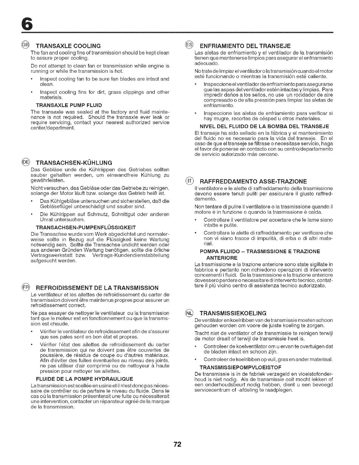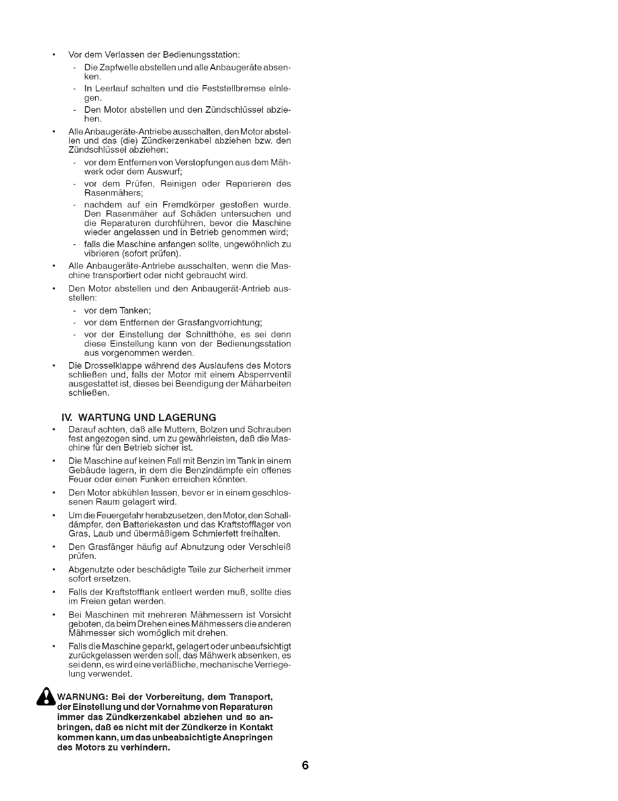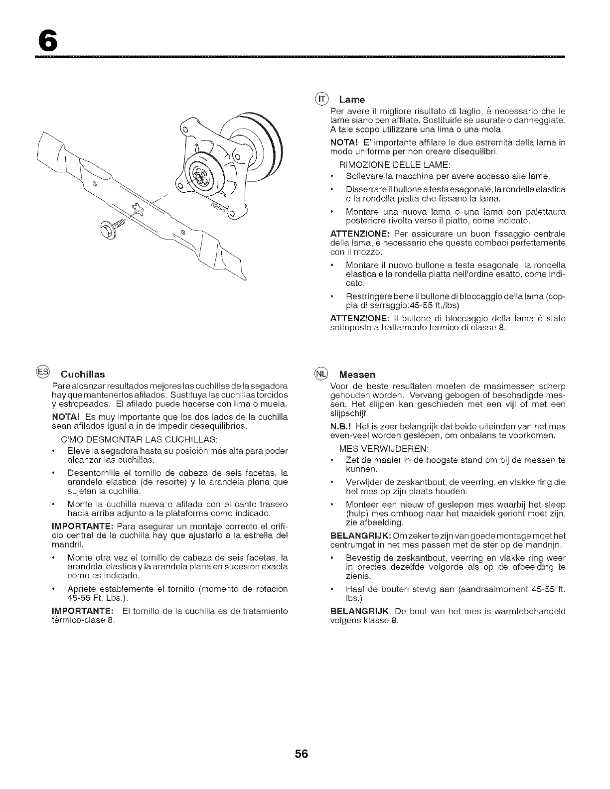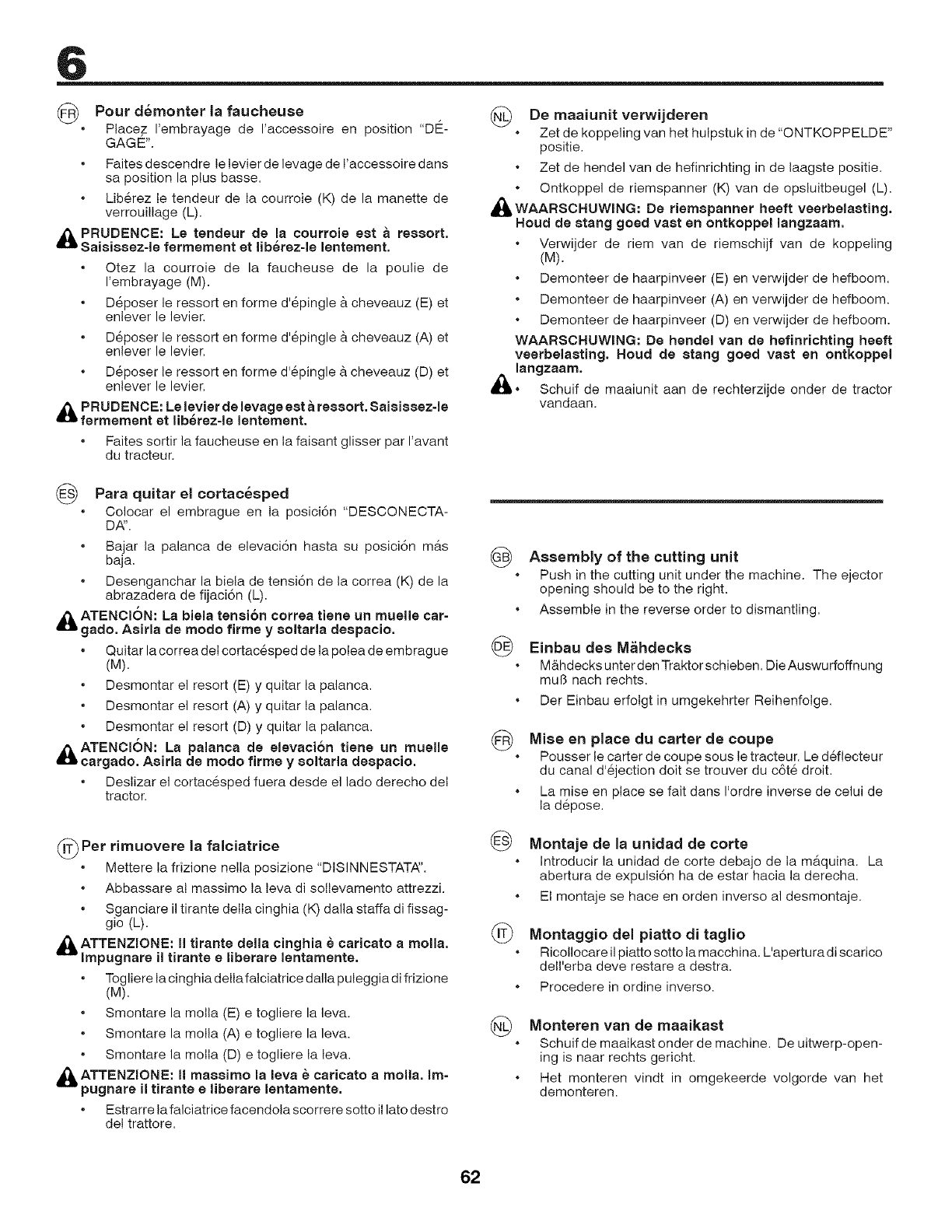 della falciatrice. Per le operazioni di pulizia, non utilizzare