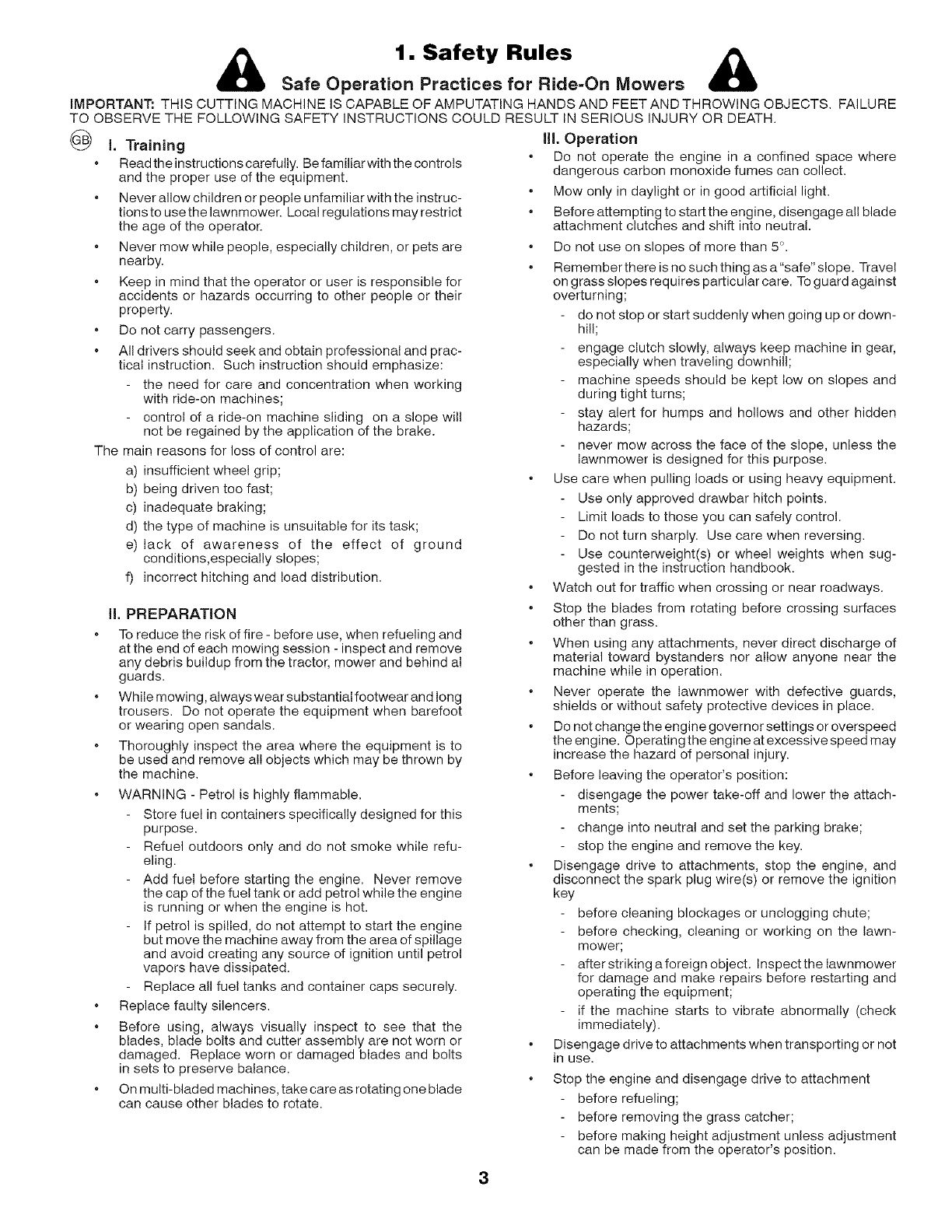 Safe Operation Practices for Ride=On Mowers