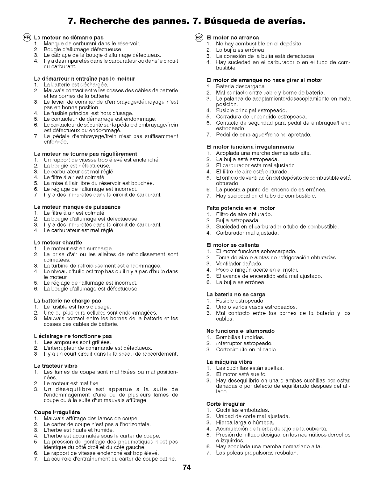Recherche des pannes.