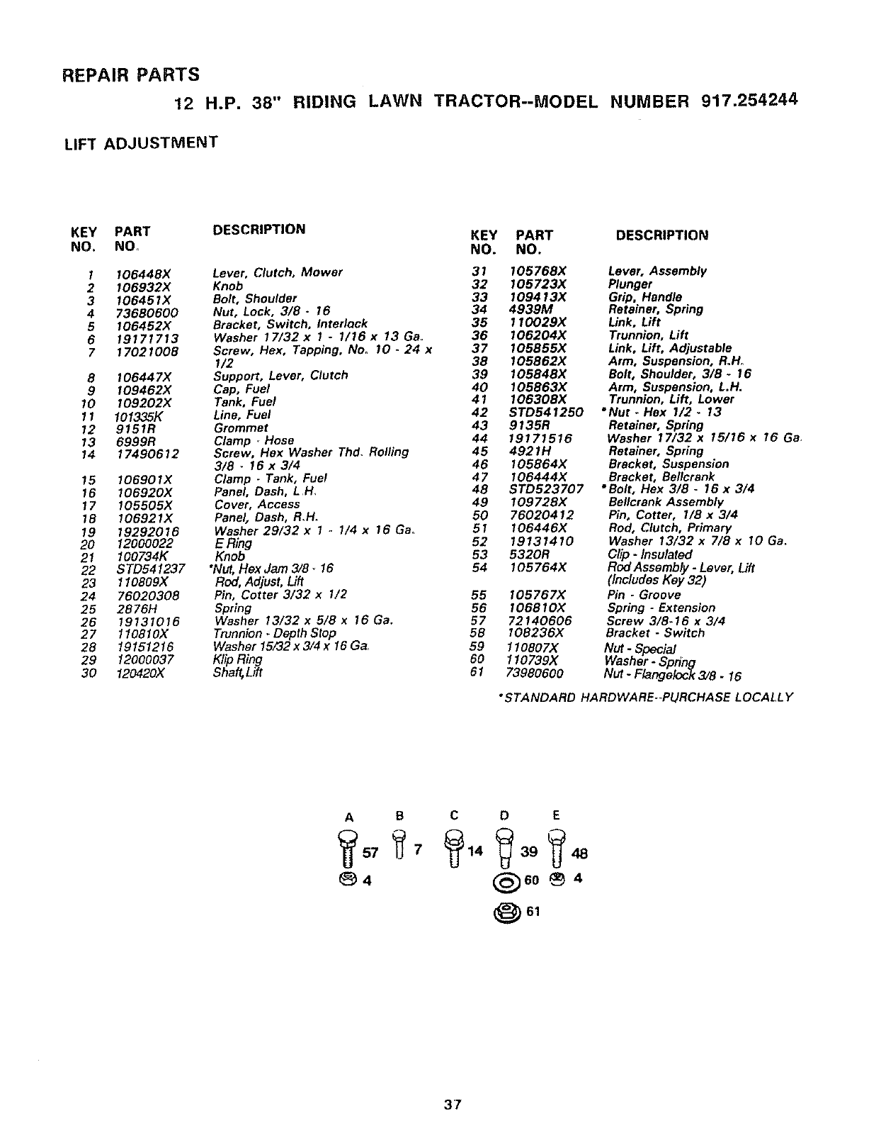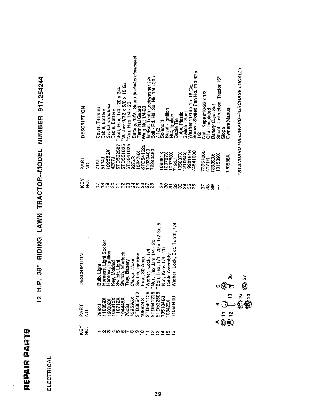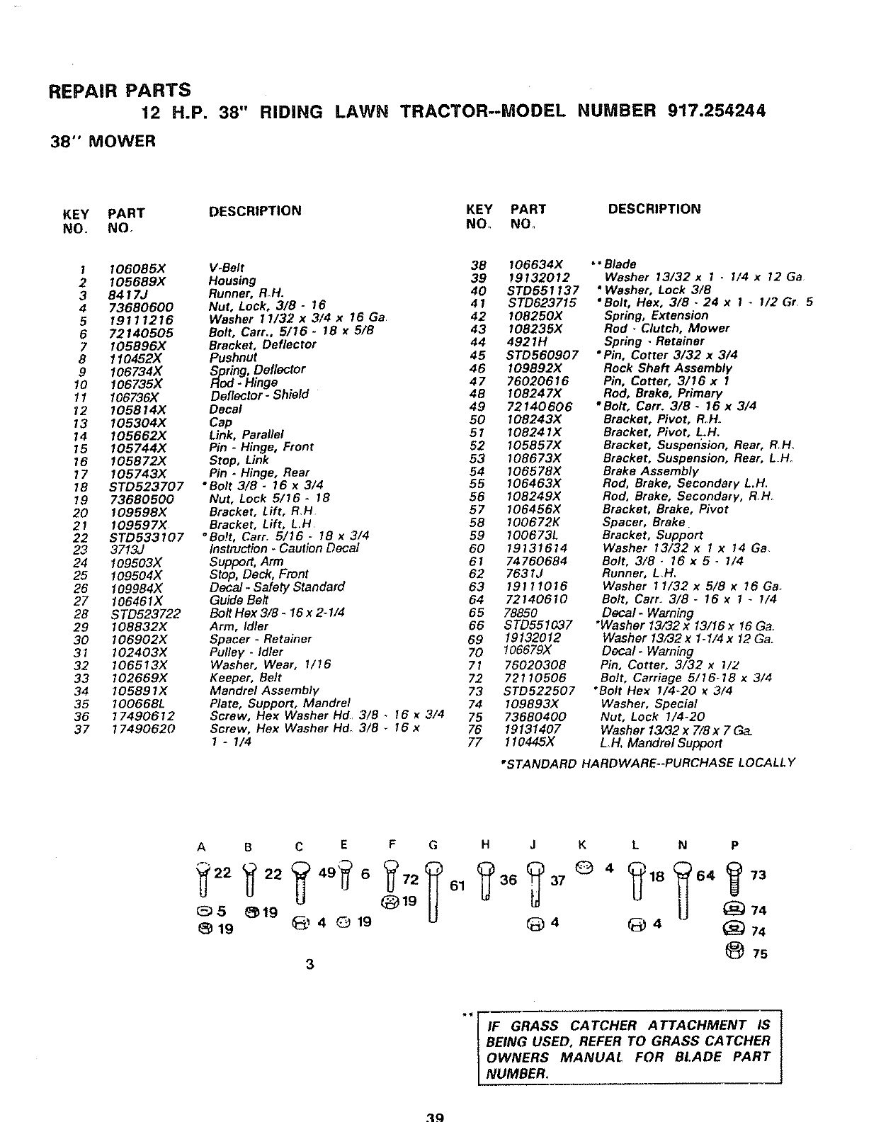 User Manual: Craftsman 917254244 917254244 CRAFTSMAN 38 MOWER LAWN TRACTOR - Manuals and Guides View the owners manual for your CRAFTSMAN 38 MOWER LAWN TRACTOR #917254244. Home:Lawn & Garden Parts:Craftsman Parts:Craftsman 38 MOWER LAWN TRACTOR Manual