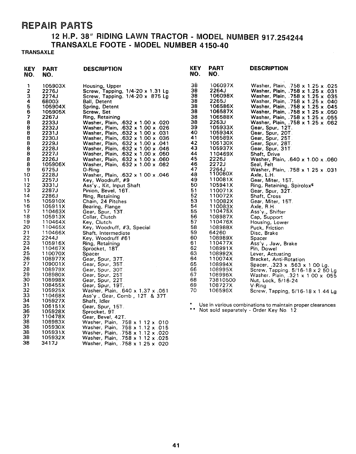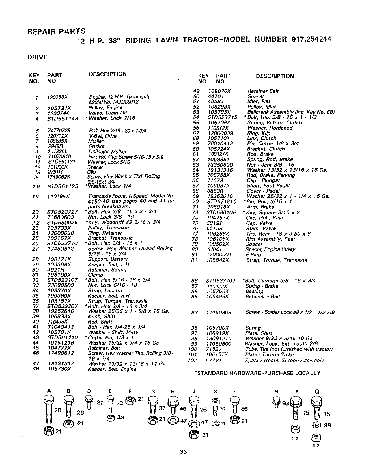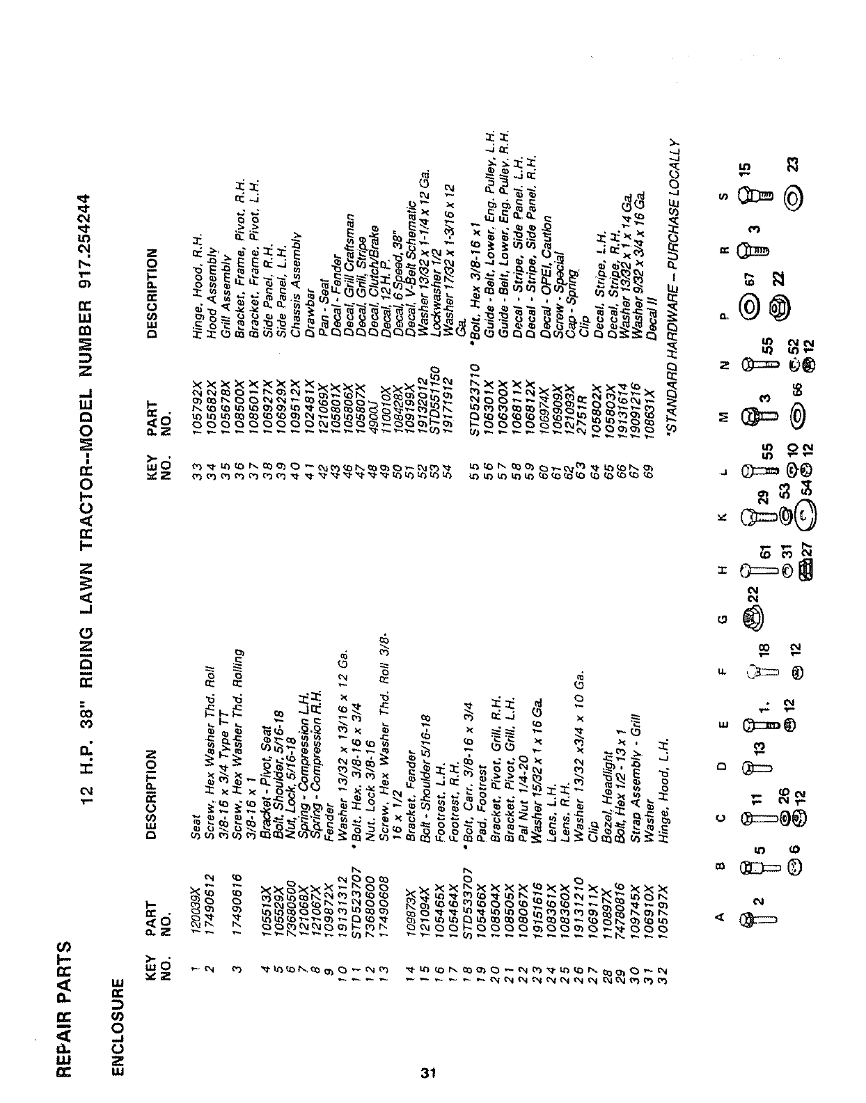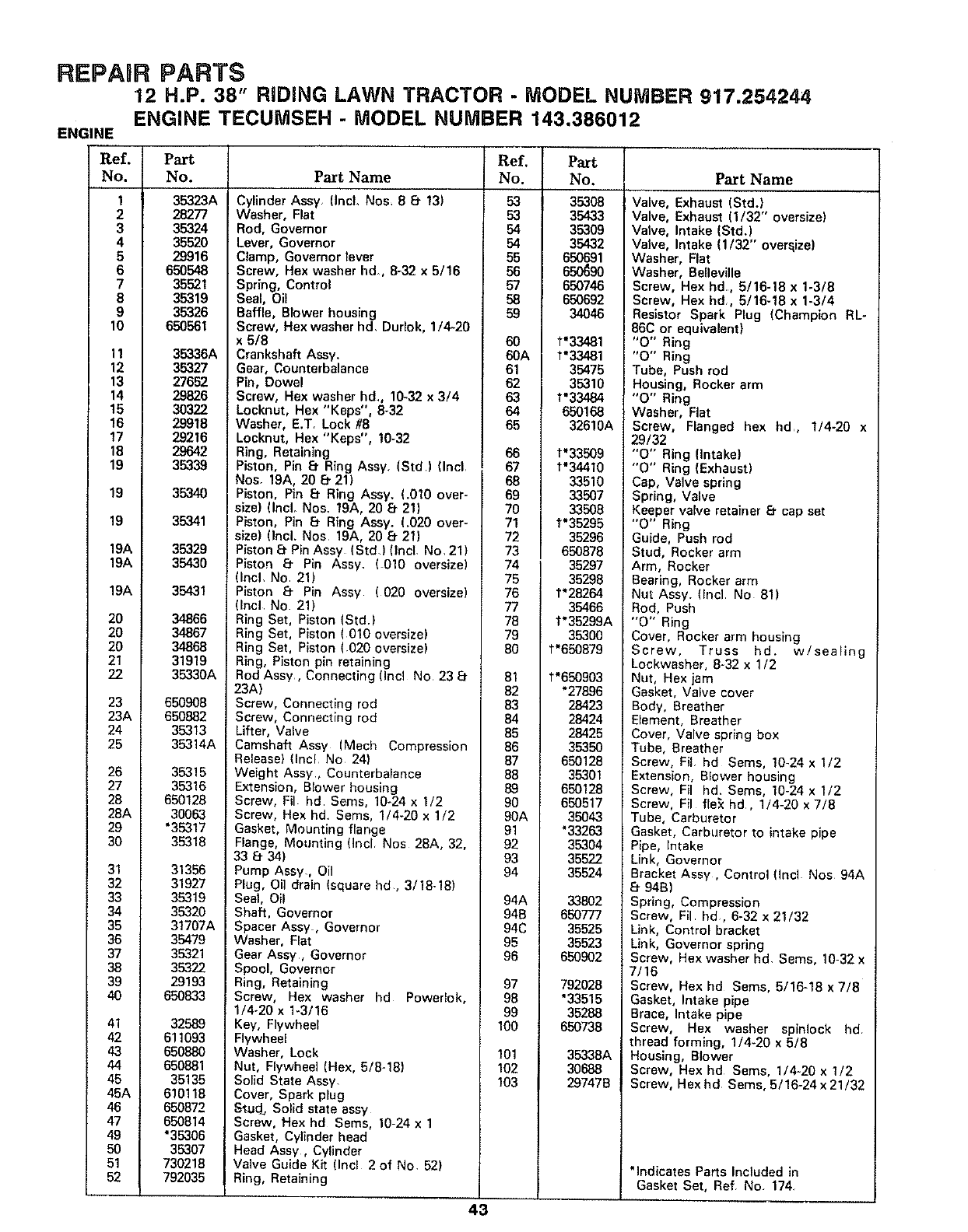 User Manual: Craftsman 917254244 917254244 CRAFTSMAN 38 MOWER LAWN TRACTOR - Manuals and Guides View the owners manual for your CRAFTSMAN 38 MOWER LAWN TRACTOR #917254244. Home:Lawn & Garden Parts:Craftsman Parts:Craftsman 38 MOWER LAWN TRACTOR Manual