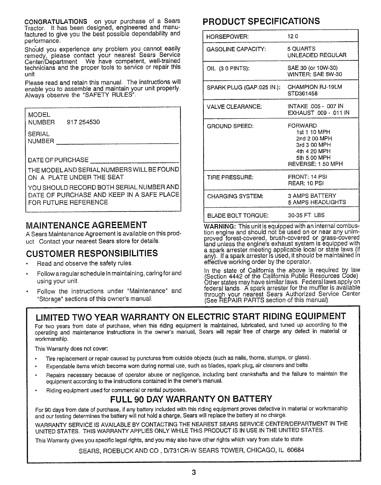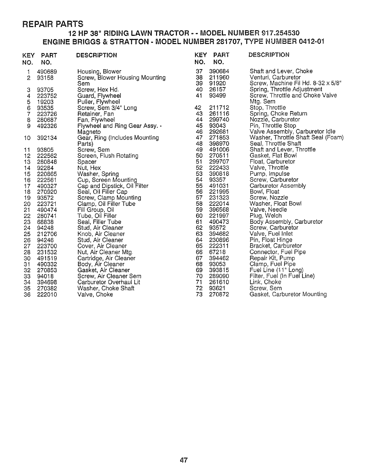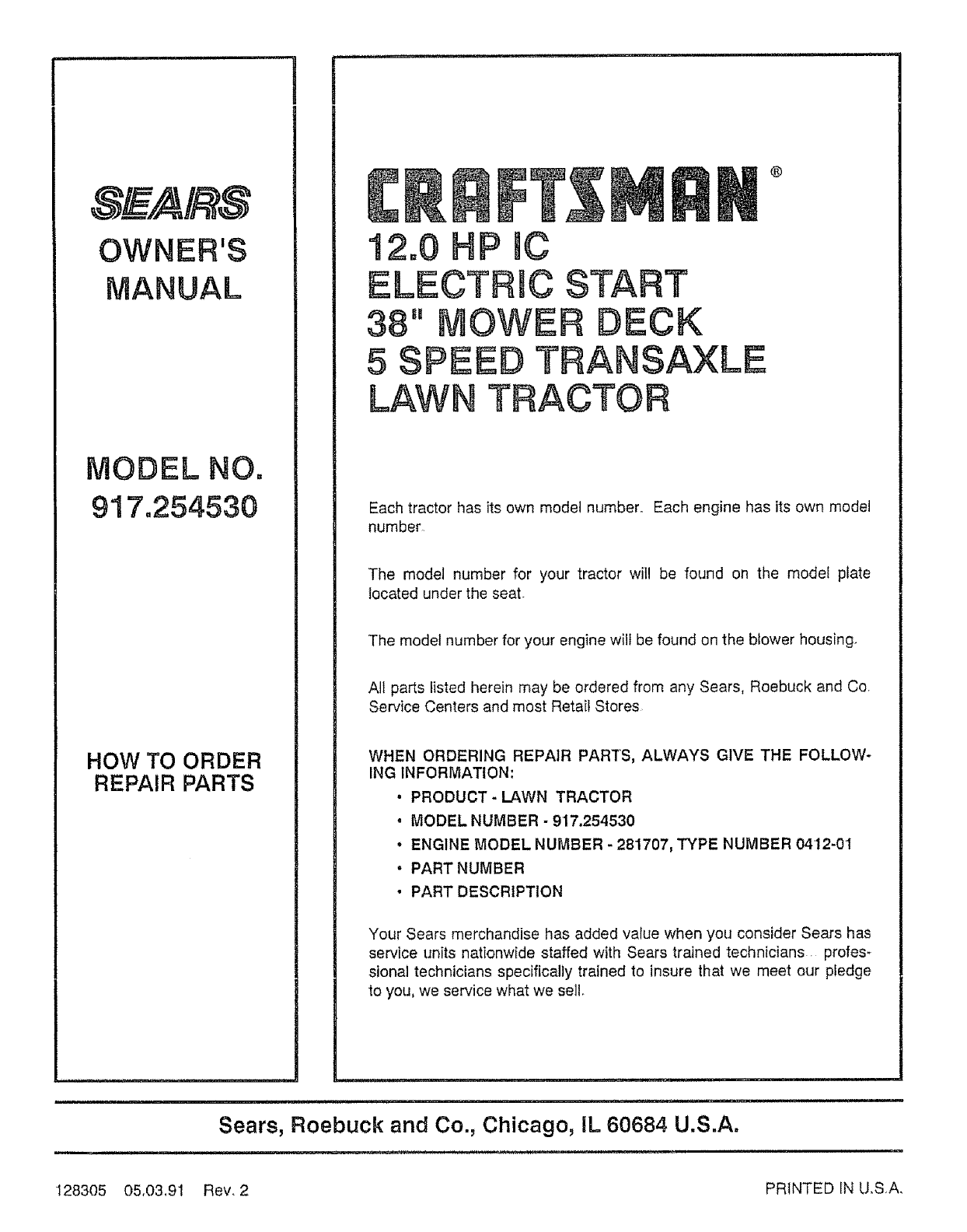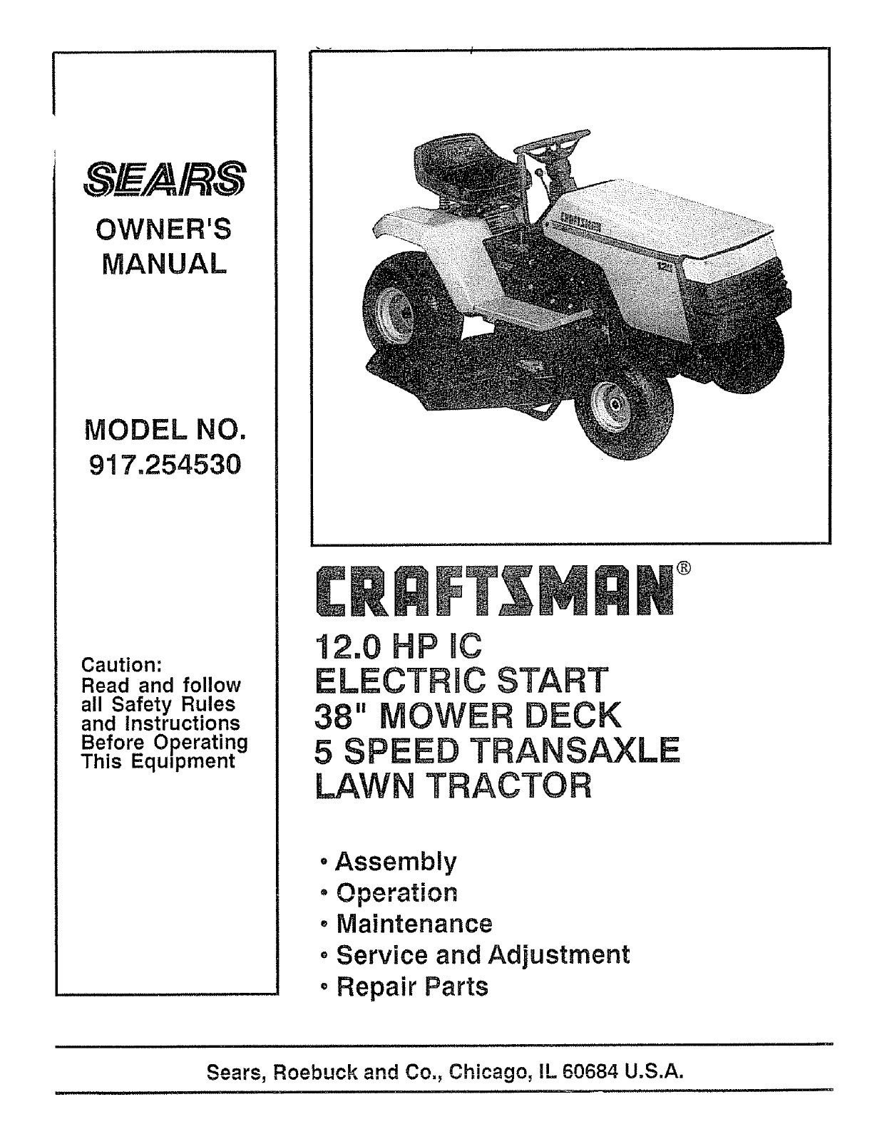 User Manual: Craftsman 917254530 917254530 CRAFTSMAN 12 HP 38 TRACTOR - Manuals and Guides View the owners manual for your CRAFTSMAN 12 HP 38 TRACTOR #917254530. Home:Lawn & Garden Parts:Craftsman Parts:Craftsman 12 HP 38 TRACTOR Manual