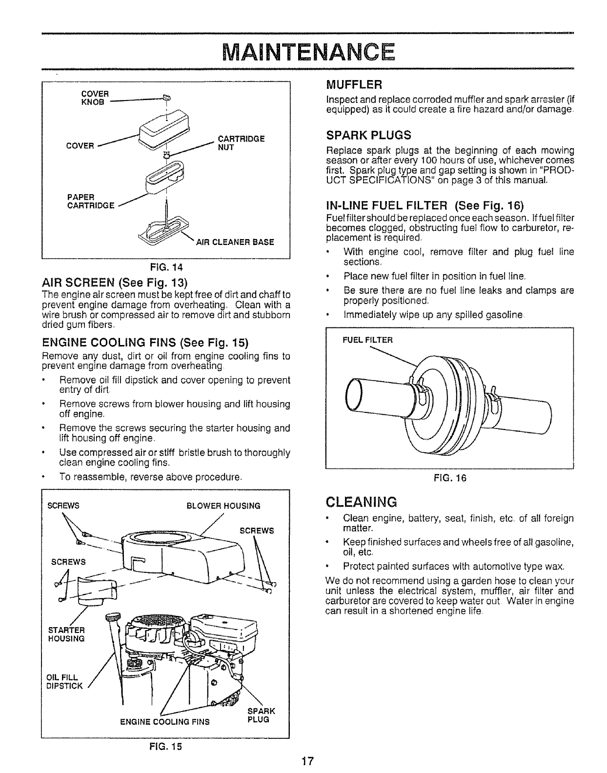 fill tank indoors. Always clean up spilled gasoline.