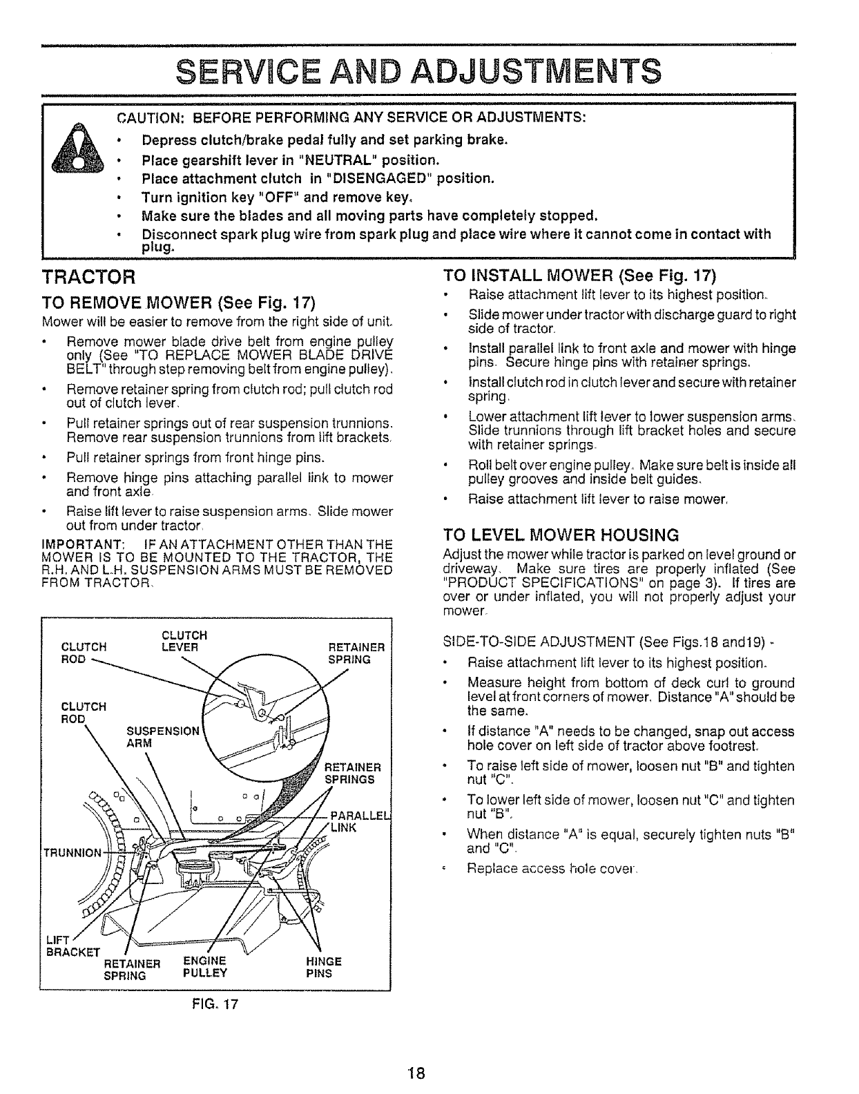 tended. Disengage the power take-off, lower the attach-