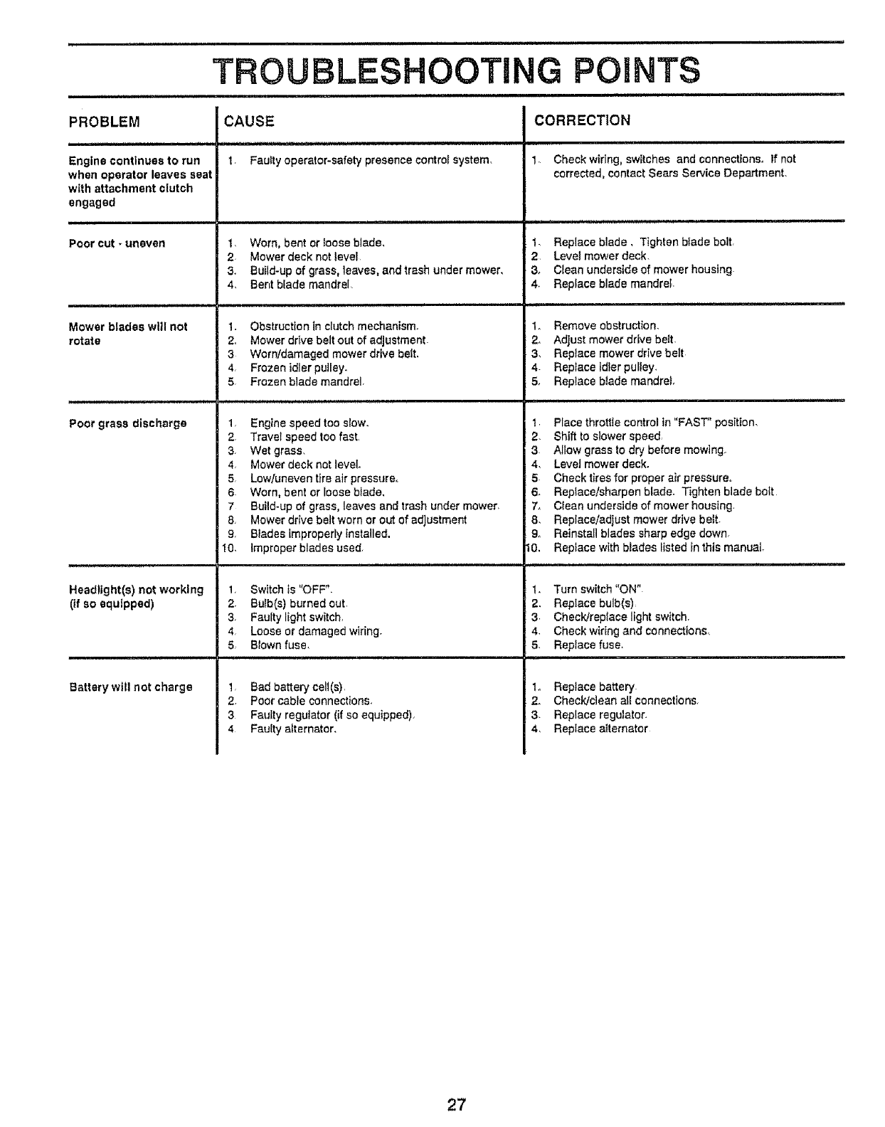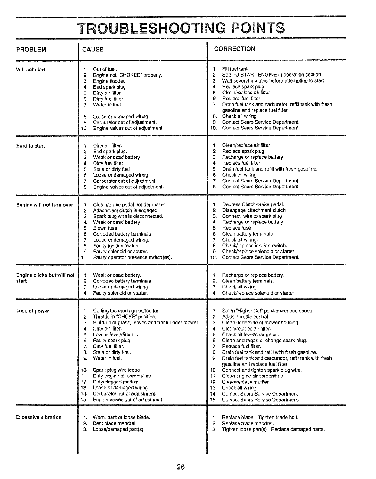All parts listed herein may be ordered from any Sears, Roebuck and Co.